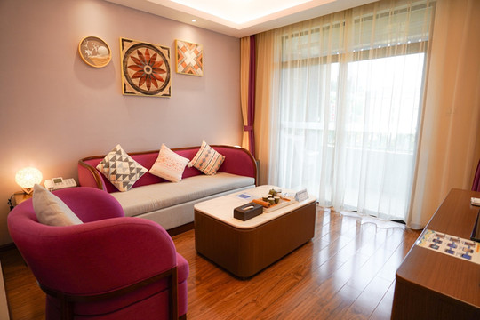 亲子房颜值很高,玩具也很多,有充满童趣的布置。在功能上,为了使小朋友的度假生活更便捷,也准备了儿童马桶、儿童洗护用品等等,很贴心。