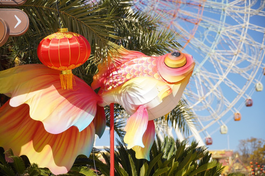 园区内的各游乐设施也换上了节日的盛装。这些精心布置的装饰,不仅为游客带来了视觉上的享受,更能感受到了春节的温馨与欢乐。