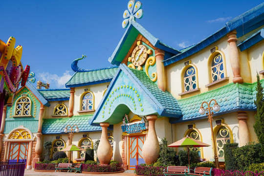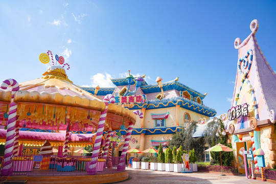 如果是带小朋友的话,可以去往童梦世界,孩子一定会非常喜欢的。园内都是色彩斑斓的卡通建筑,蛋糕做成的房屋、洒满糖果的水池,这里就是宝宝们的魔幻世界,该区包括11个游玩项目,可以畅玩大半天啦。