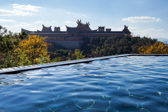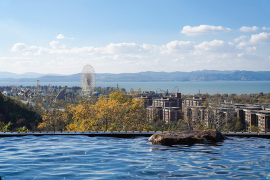 位于山庄顶端,是整个山庄最佳的观赏池,几乎是每一个游客的必来之地,也是拍照打卡的绝佳视角。在享受温泉带来的舒爽时,可远眺美丽的滇池,可近观雄伟的古滇王宫,整个温泉山庄尽收眼底,蔚蓝的天空倒映在池水中,有种水天一线的感觉。朝可观日出,暮可赏晚霞,正是诗意生活的体现。
