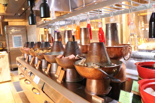 酒店最近推出了暖冬自助火锅,有冬阴功、麻辣、菌汤、番茄汤四种汤底任意选择,清酒、啤酒郁软饮随意畅饮,188元/位性价比很高。