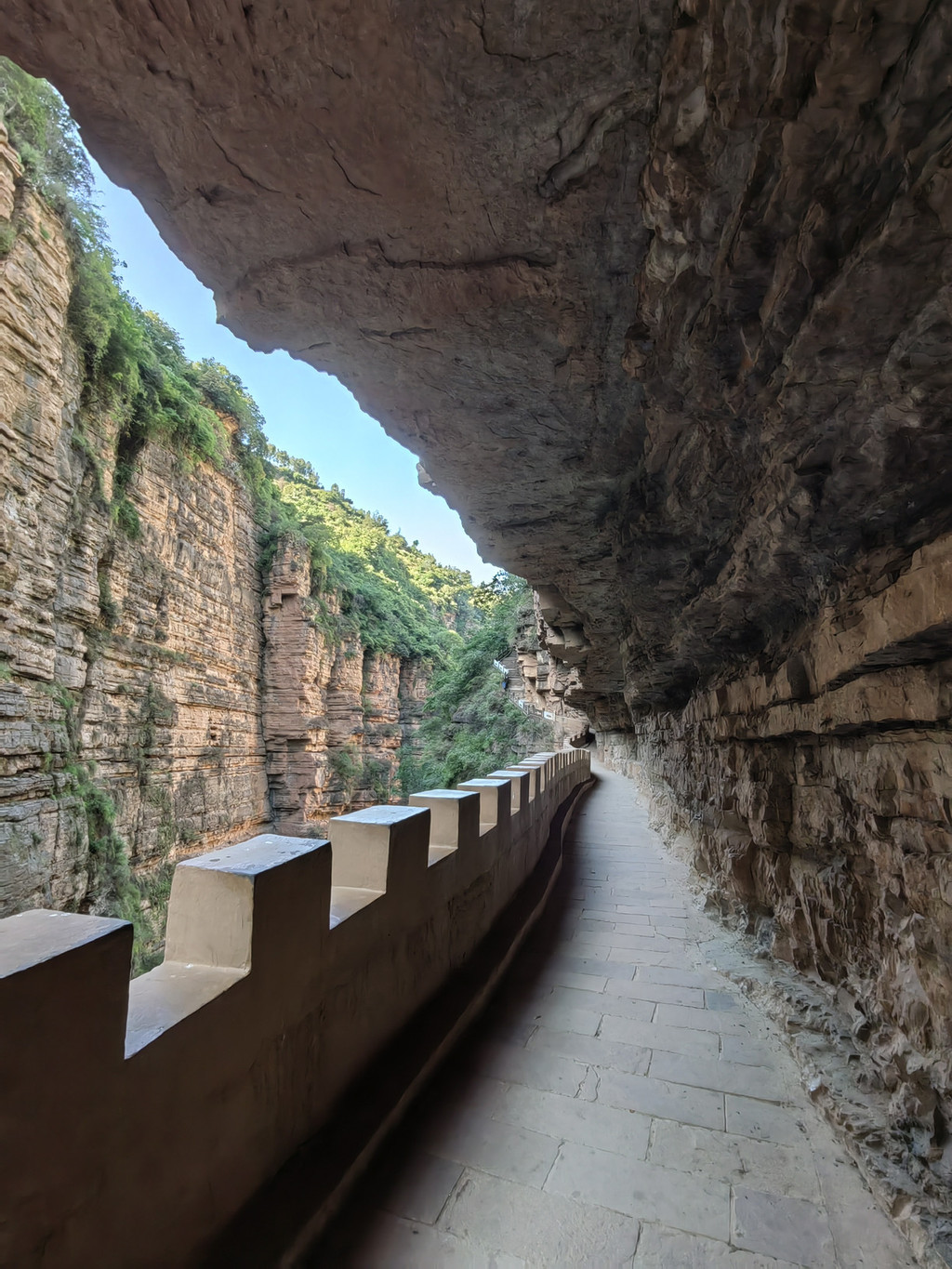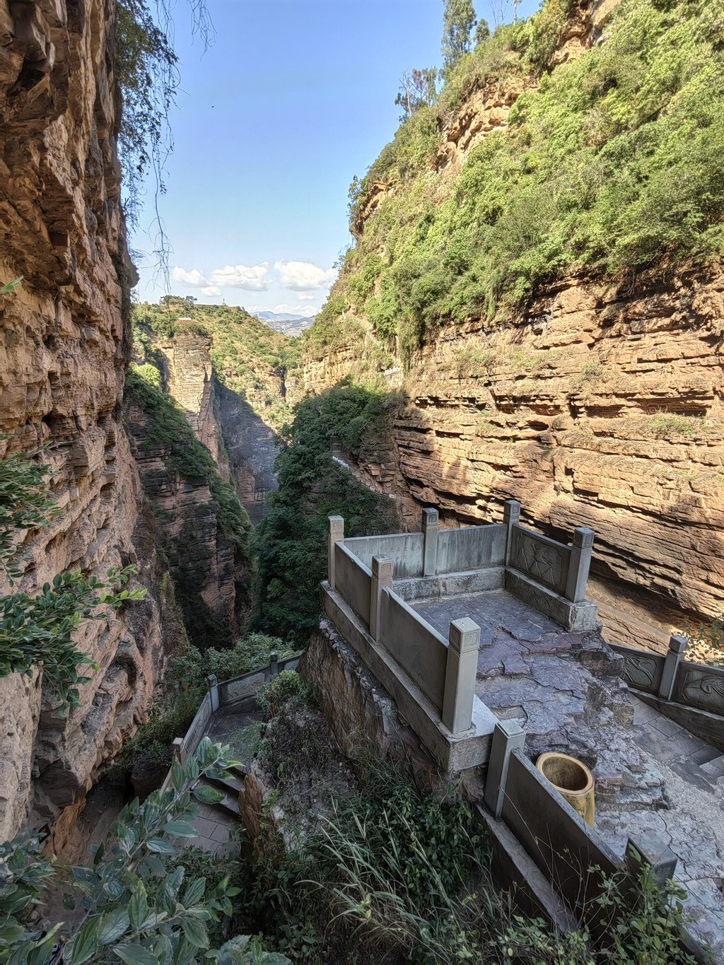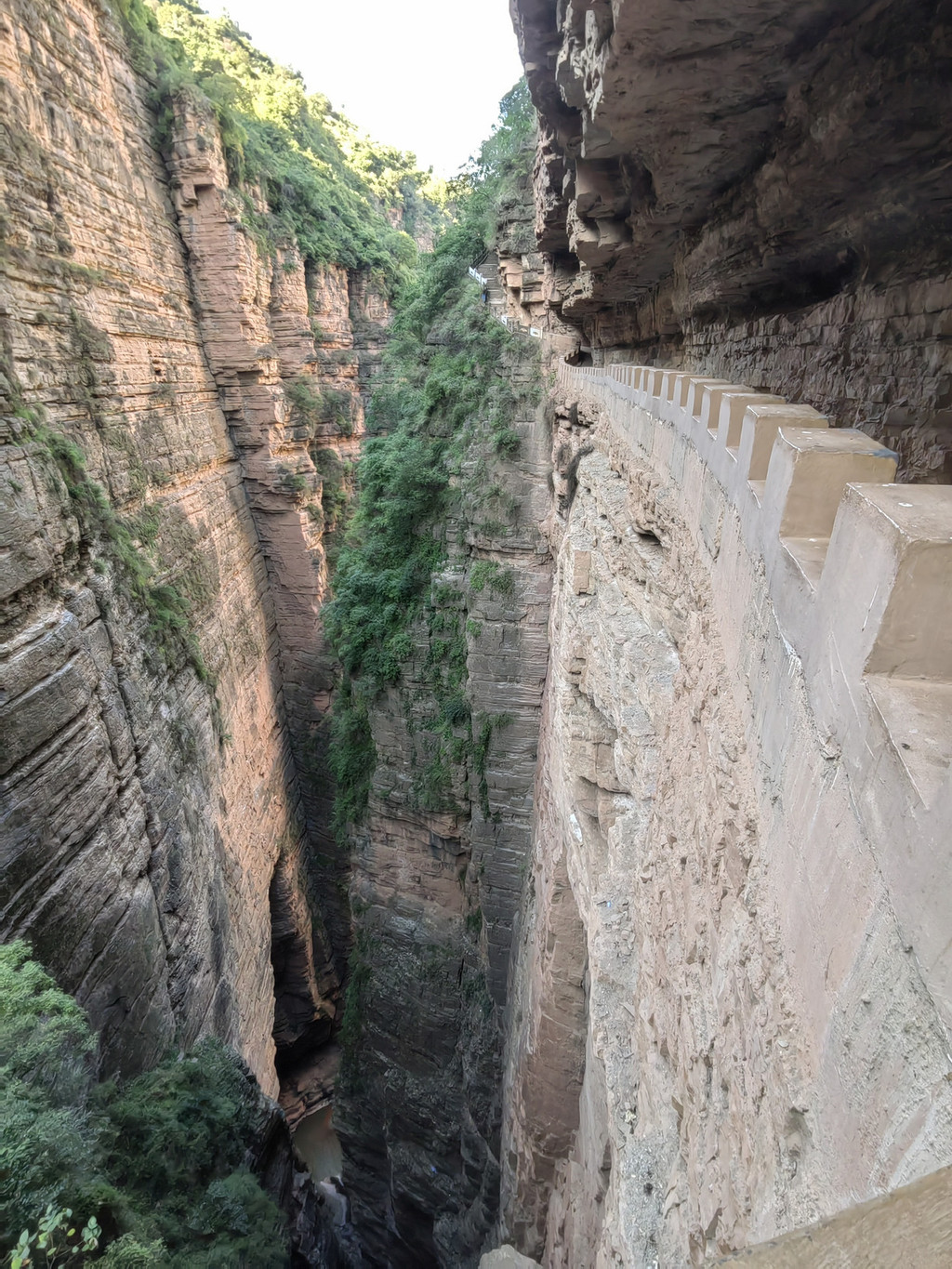 虽然道路就悬挂在岩壁上,但裂谷太深,大部分时间看不到谷底,只能听到哗哗的流水声。