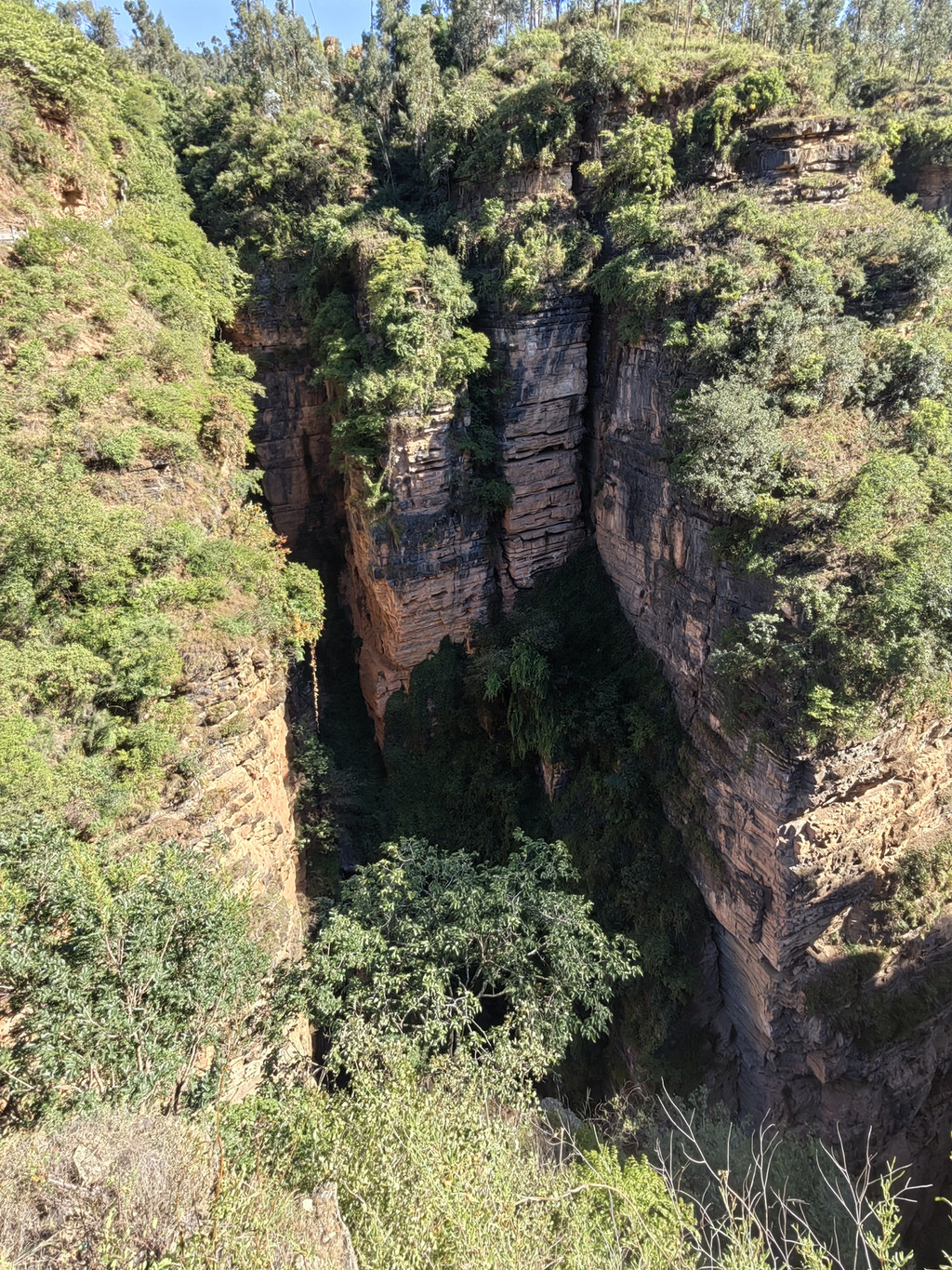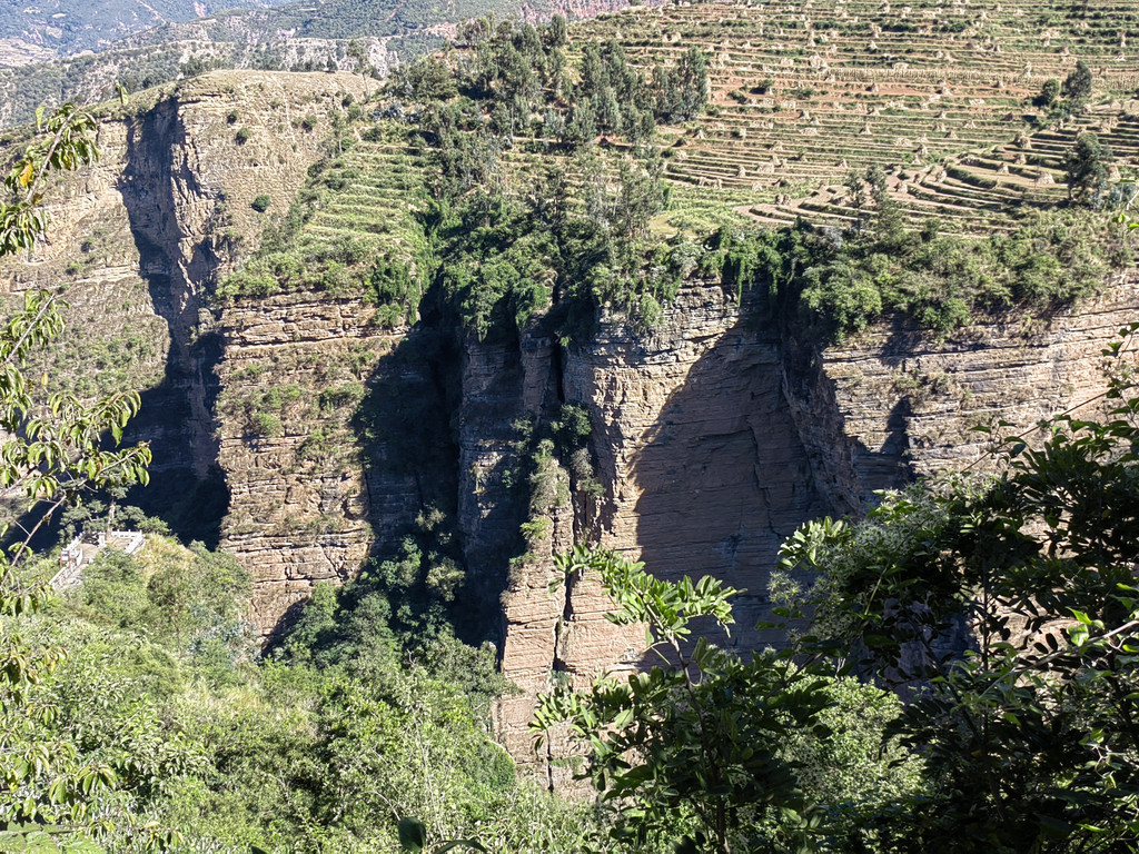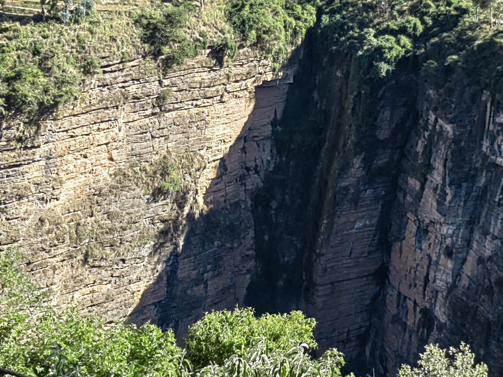虽然道路就悬挂在岩壁上,但裂谷太深,大部分时间看不到谷底,只能听到哗哗的流水声。