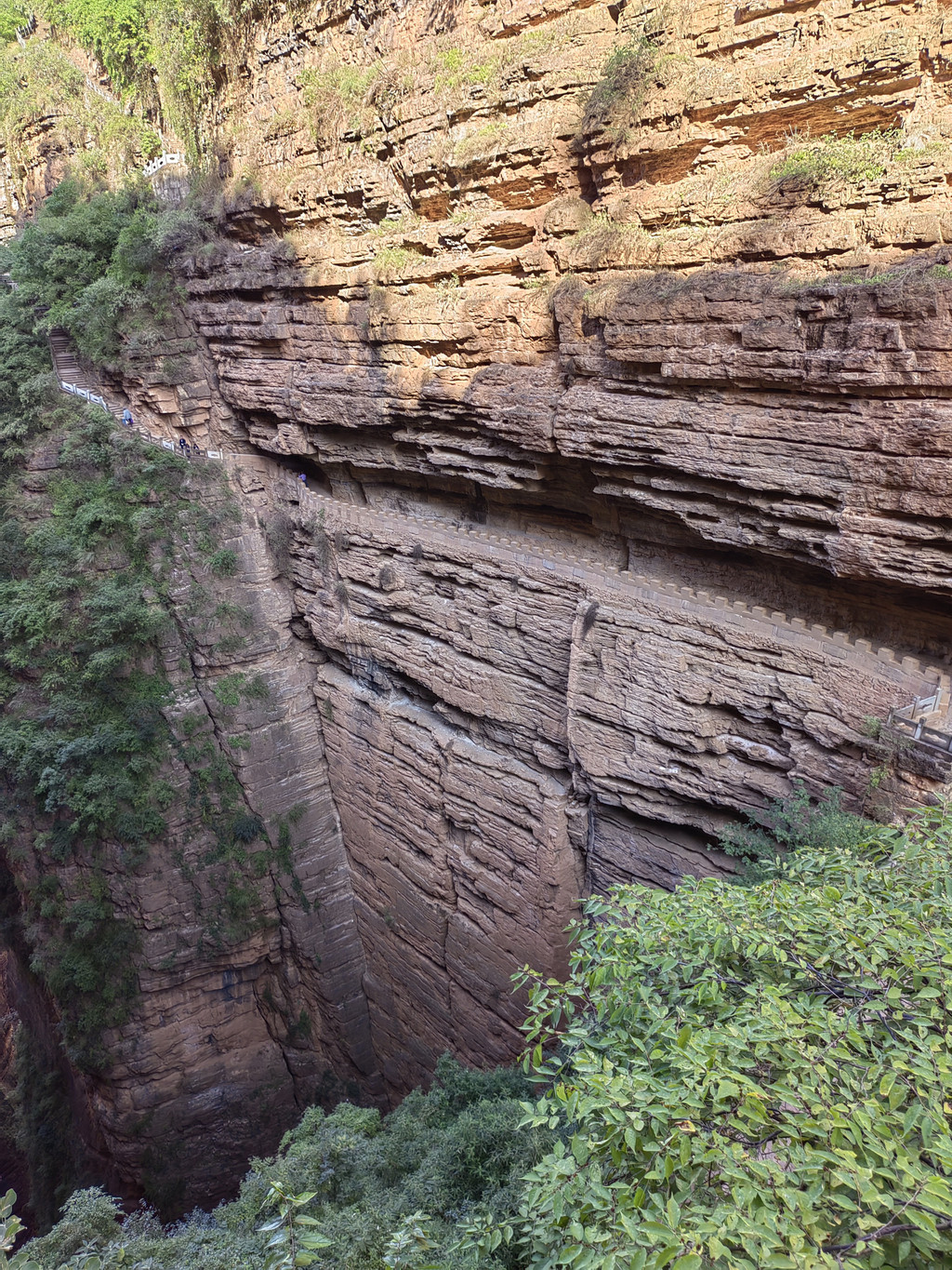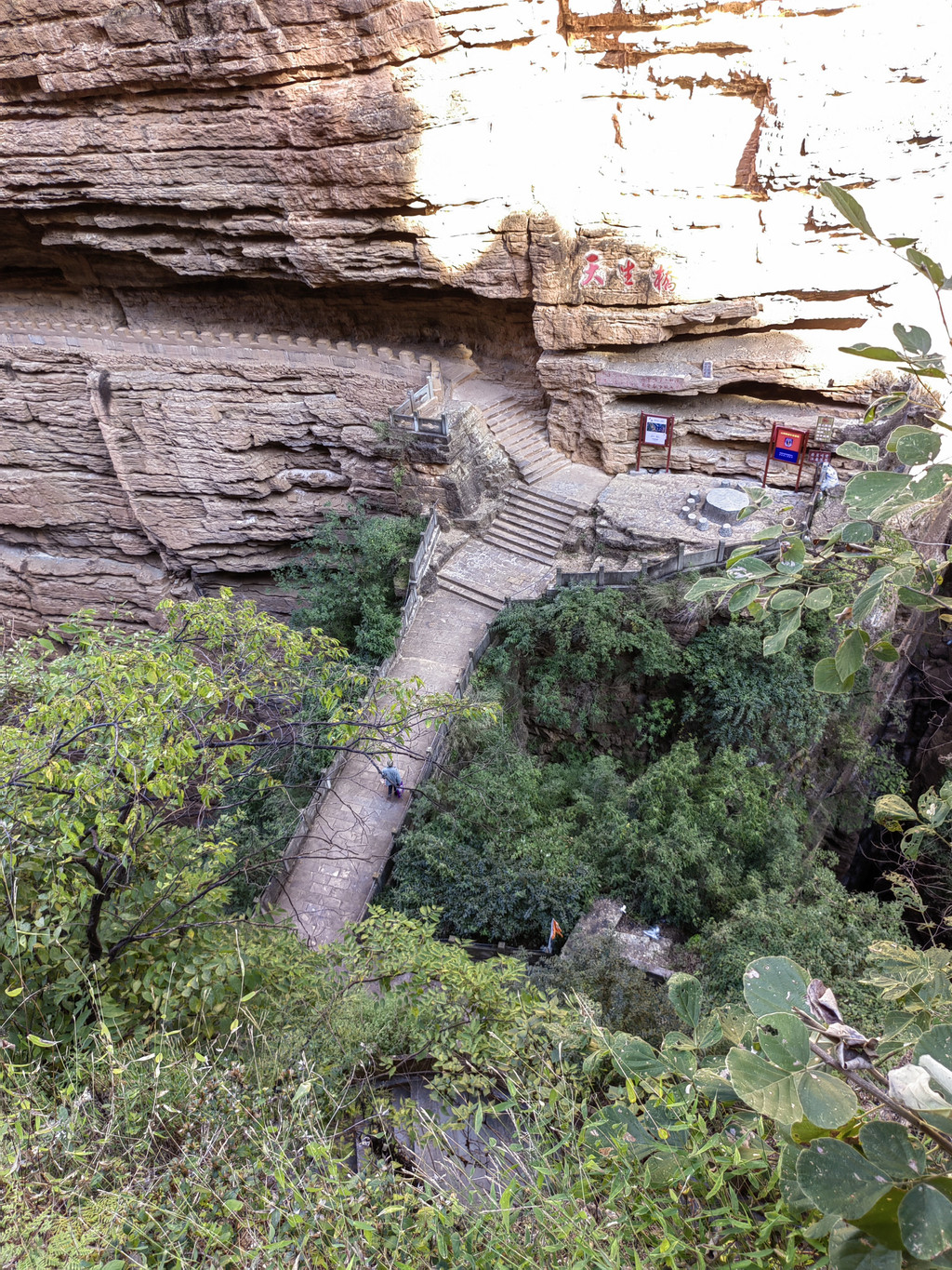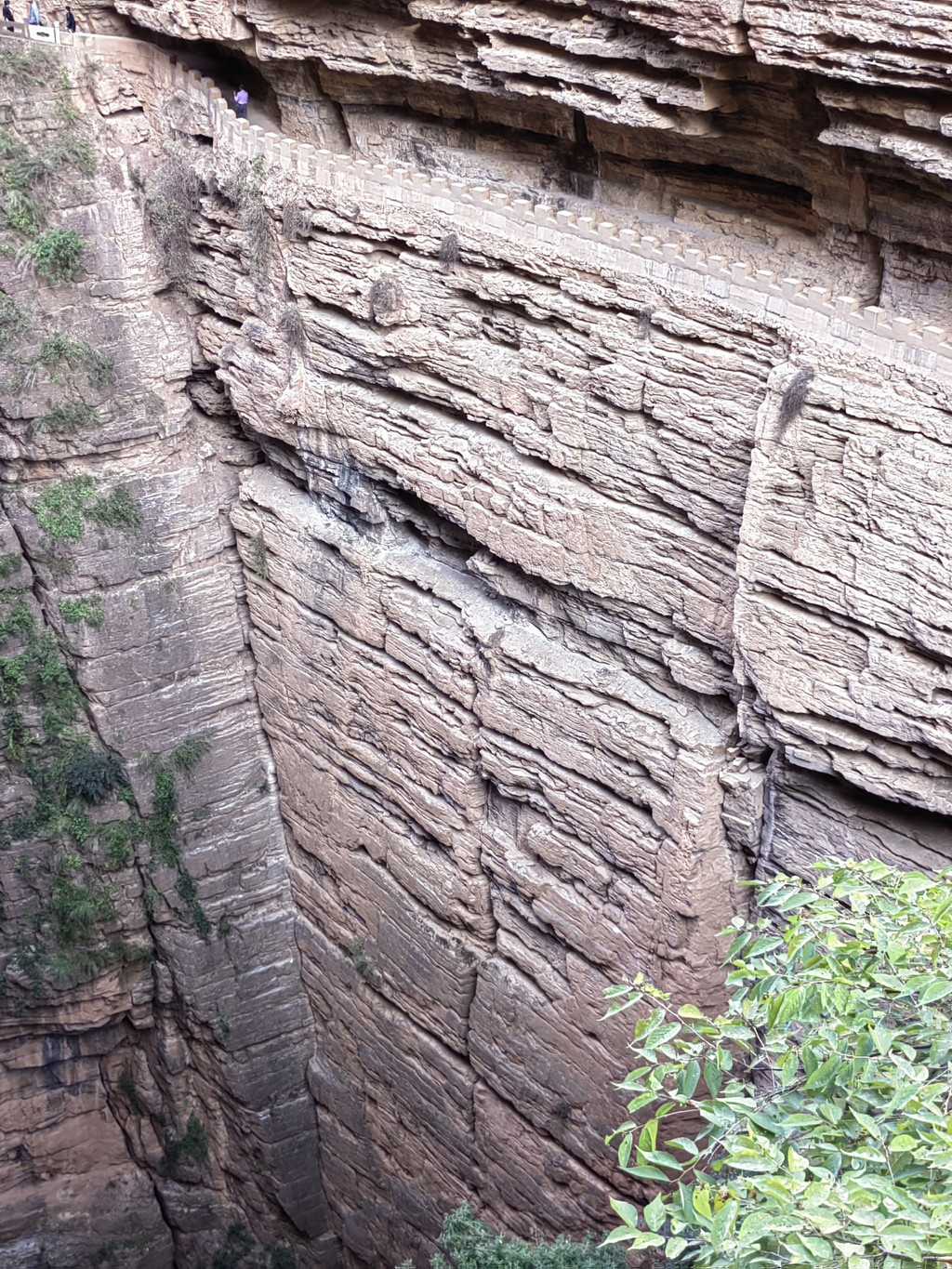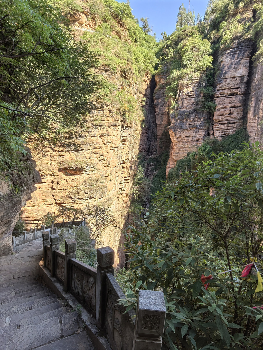 全程的台阶步道都在这种直上直下的悬崖绝壁之上。我们与大多数游客都是从上向下走,但也有不少人从下向上走,因石阶栈道很窄,许多地方两人相遇须侧身方可交错而过。