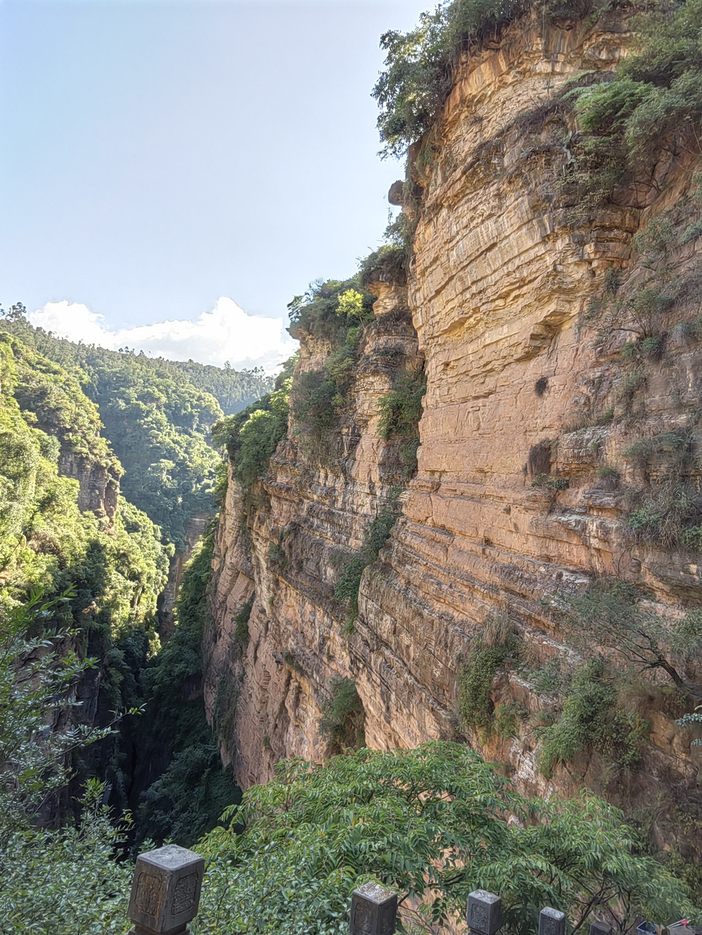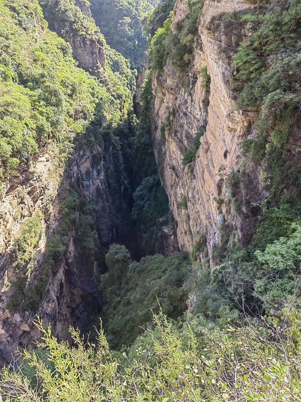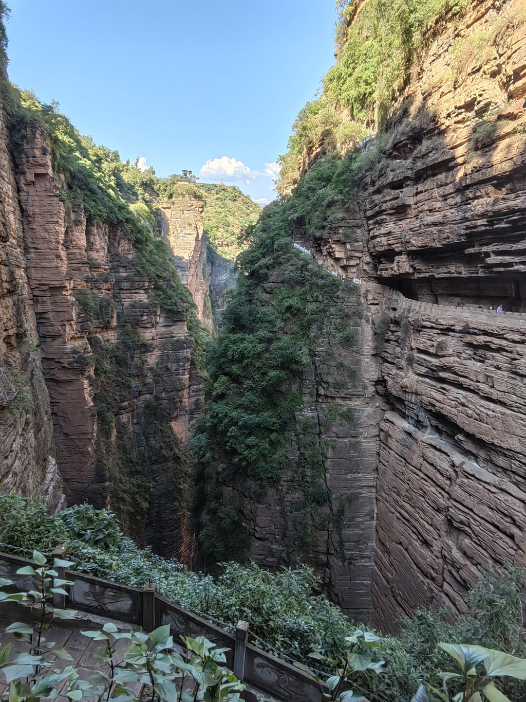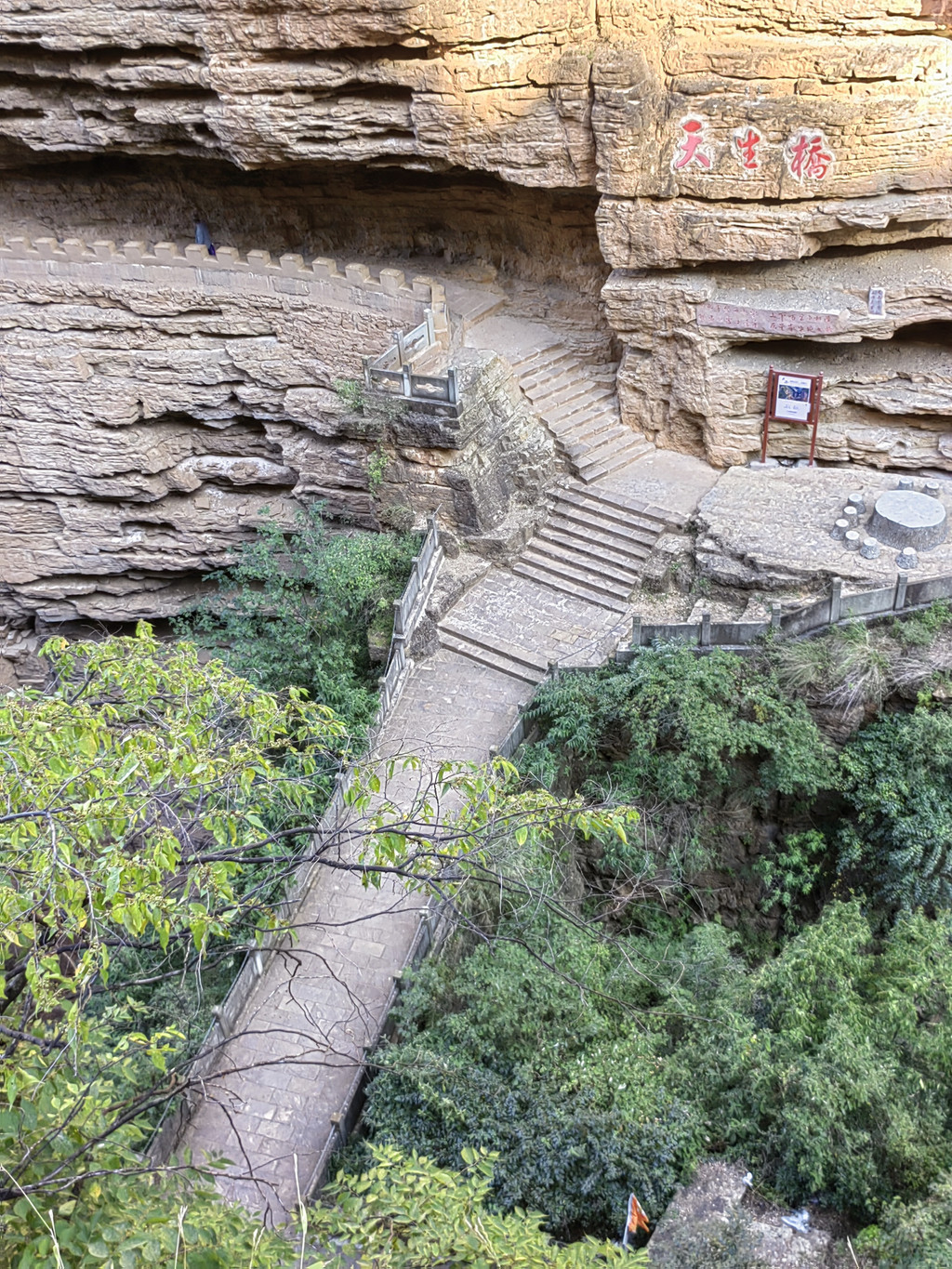 全程的台阶步道都在这种直上直下的悬崖绝壁之上。我们与大多数游客都是从上向下走,但也有不少人从下向上走,因石阶栈道很窄,许多地方两人相遇须侧身方可交错而过。