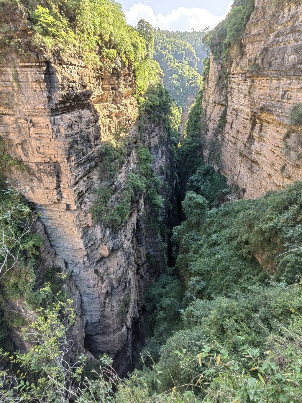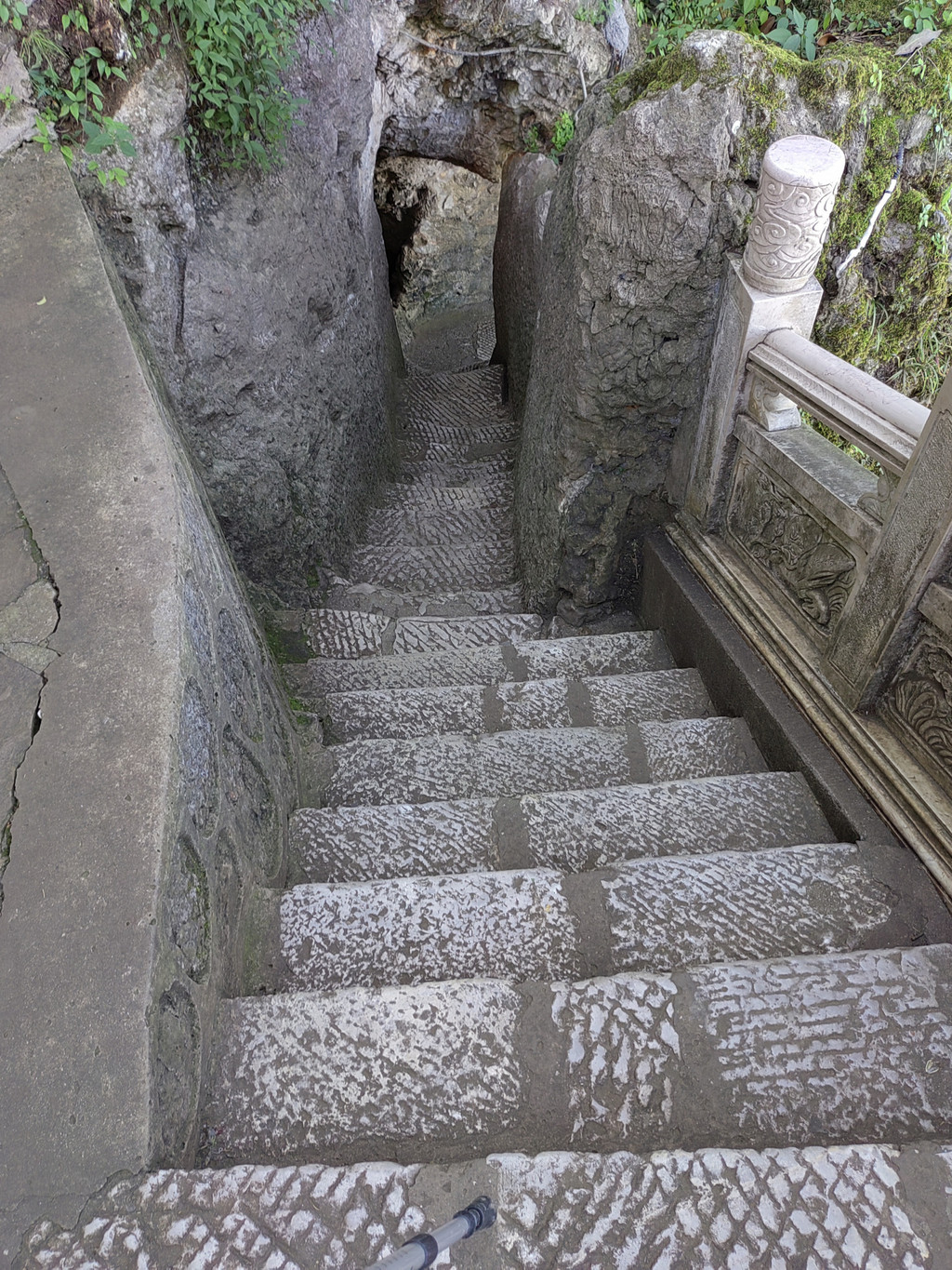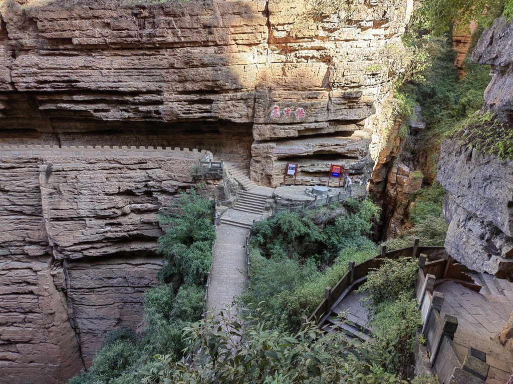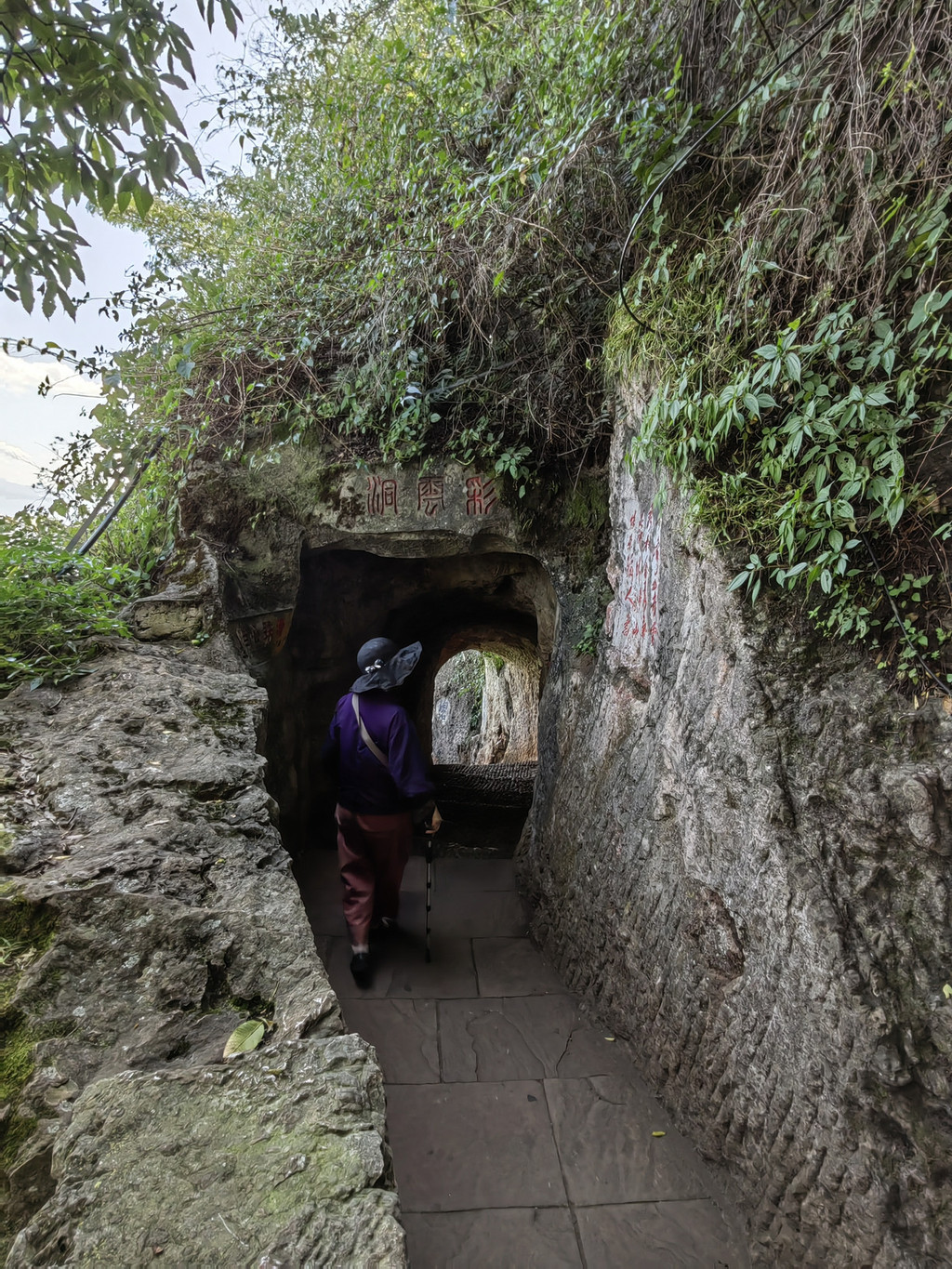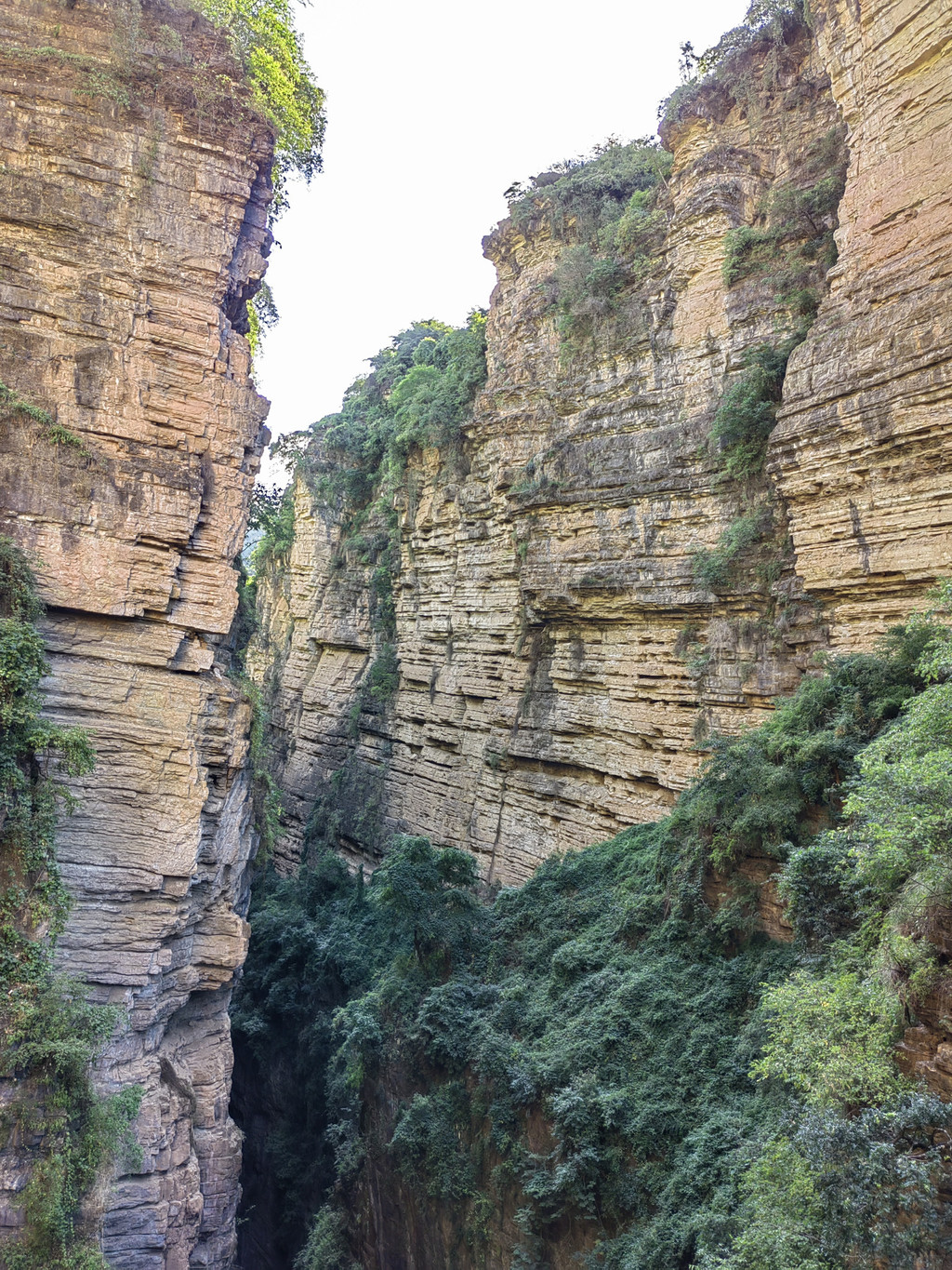 全程的台阶步道都在这种直上直下的悬崖绝壁之上。我们与大多数游客都是从上向下走,但也有不少人从下向上走,因石阶栈道很窄,许多地方两人相遇须侧身方可交错而过。