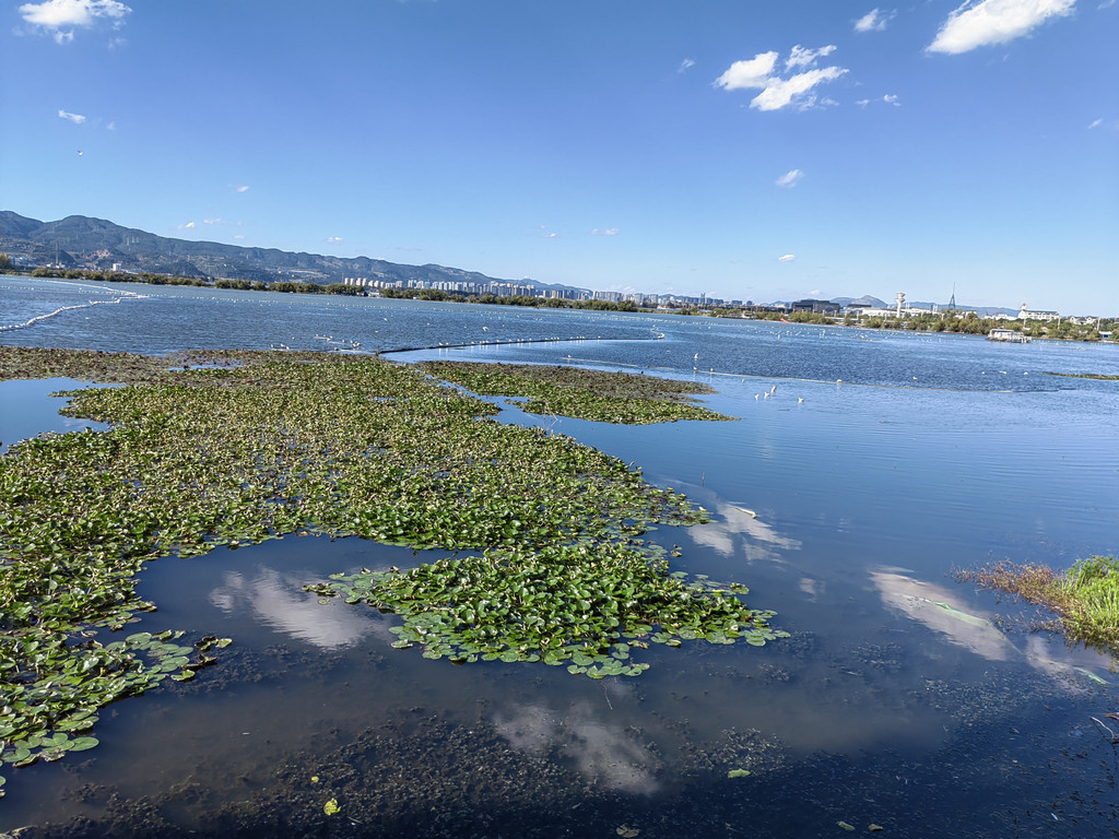 海埂,就是滇池中一道东西走向的楔形长堤,长4千米、宽100米。它将滇池分成了两片湖泊,埂南是碧波万顷的滇池,埂北则称之为“草海”,水深不到2米,风平浪静。