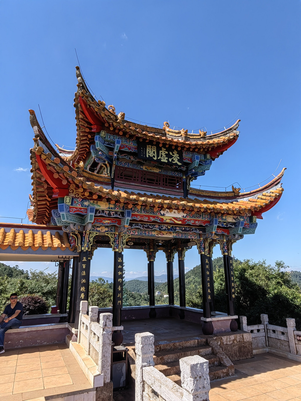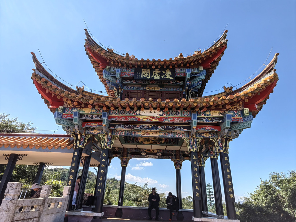 凌虚阁是西山风景区的一个重要景点,位于西山之巅,与滇池的相对高度有620米。凌虚阁是三清阁的组成部分,始建于元代(泰定元年1324年)前后。凌虚阁观景平台比较宽敞,是两座阁楼和连廊构成,也有一个不小的露台广场。游客可以在此歇息,同时尽情欣赏眼前的美景,有滇池浩瀚,有高楼林立,也有群山连绵。
