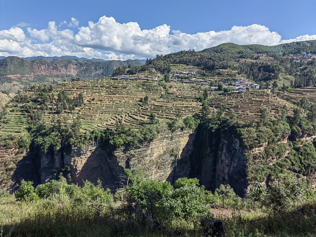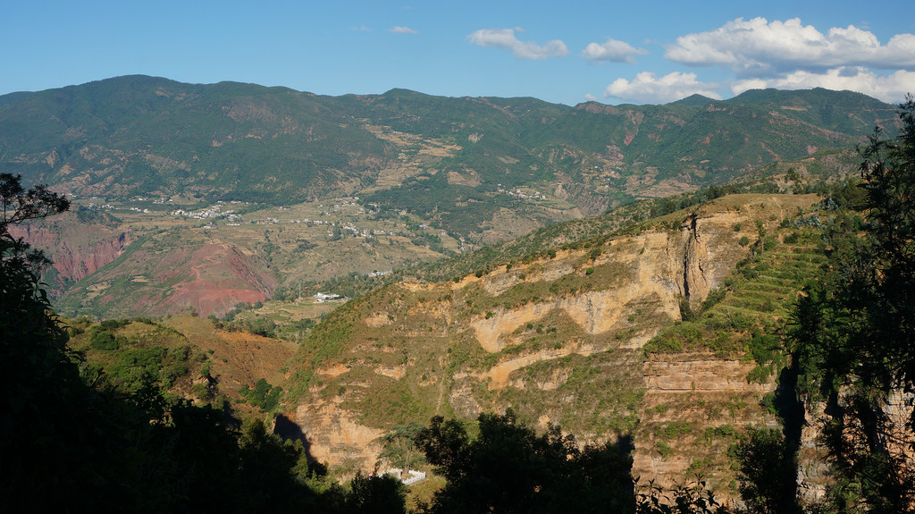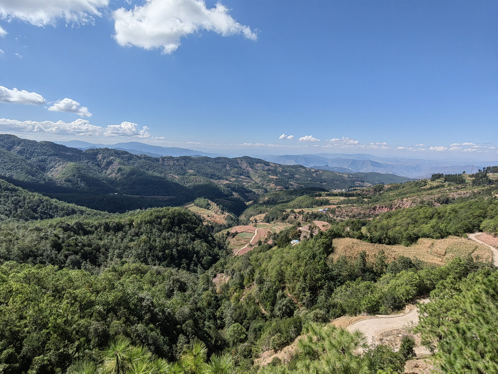 早晨从酒店出发,上G5京昆高速,一路疾驰到武定下高速走G108(京昆线)。这一段是国道,路况还可以,路幅较宽,路面还算平整,弯道也不多。接下来的长己线就不行了,简直可以用惨不忍睹来形容。路窄弯多坡陡就不说了,更糟糕的是道路年久失修,路面坑坑洼洼,像是刚刚经历了一场炮战,遍布弹坑。尽管出发前就看到过其他驴友吐槽这条路的路况,心里有点准备,而且以前在湘西、鄂西和广西也没少走各种各样的烂路。但这条路的状况还是超出了我的想象。