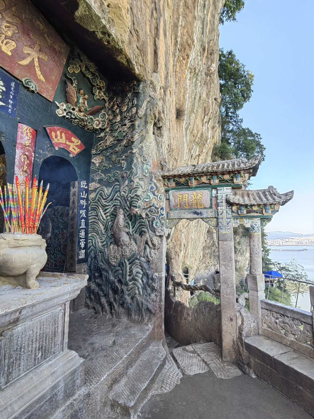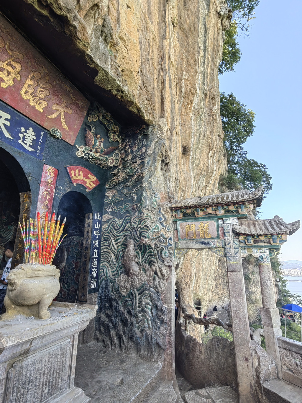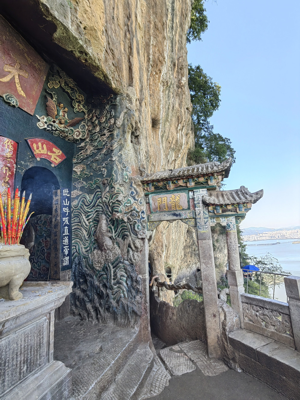 龙门指的是在西山景区罗汉山与挂榜山之间千仞峭壁上的一段石雕工程。北起三清阁的“别有洞天”石洞门,南至达天阁止,一路向上的千百个台阶和沿途随处可见的浮雕、石刻和山洞等都是由清代匠人采用原始的工具一点点雕琢而成,整个工程历经72年才得以完工,堪称壮观。