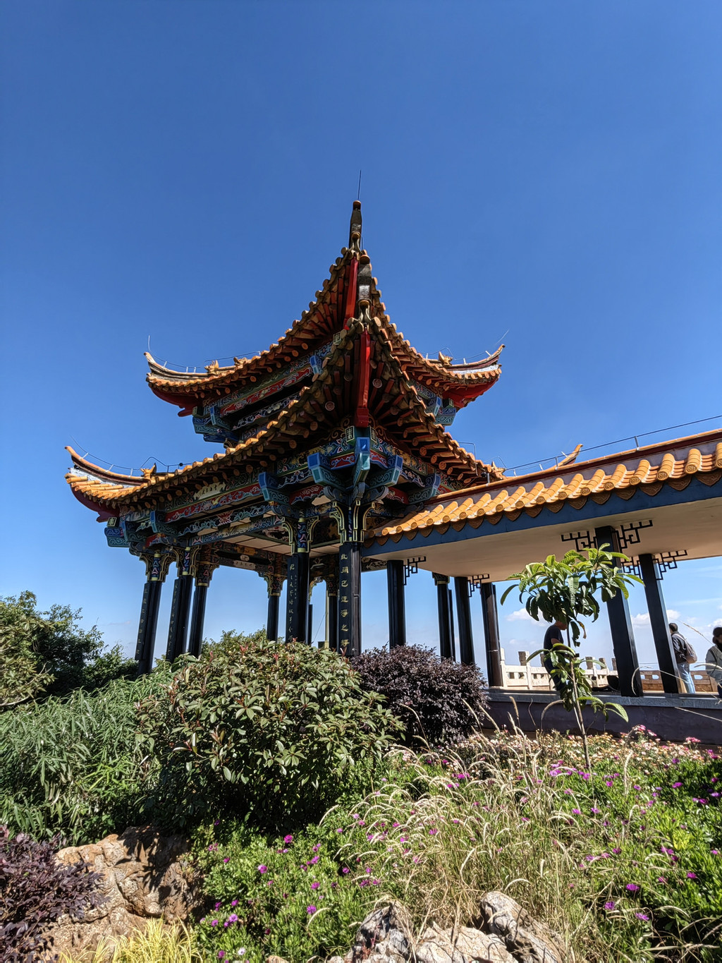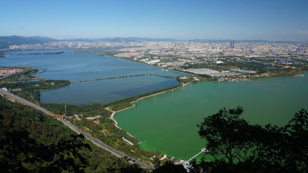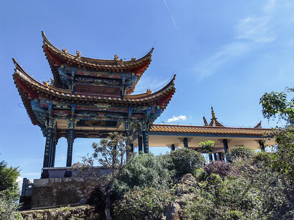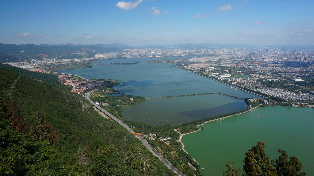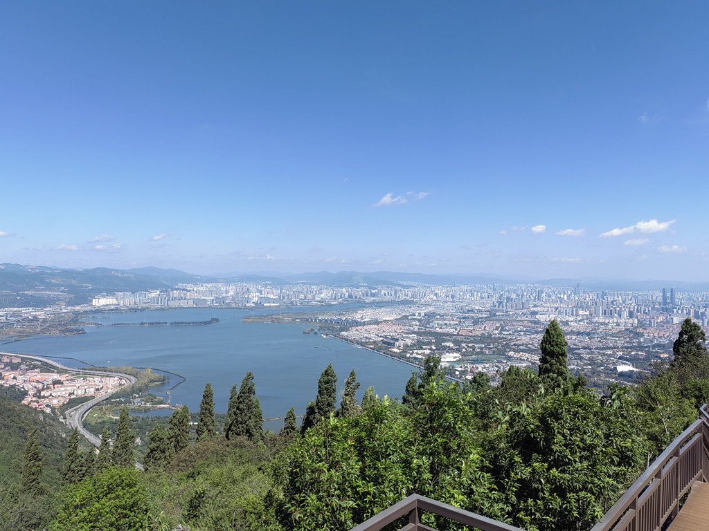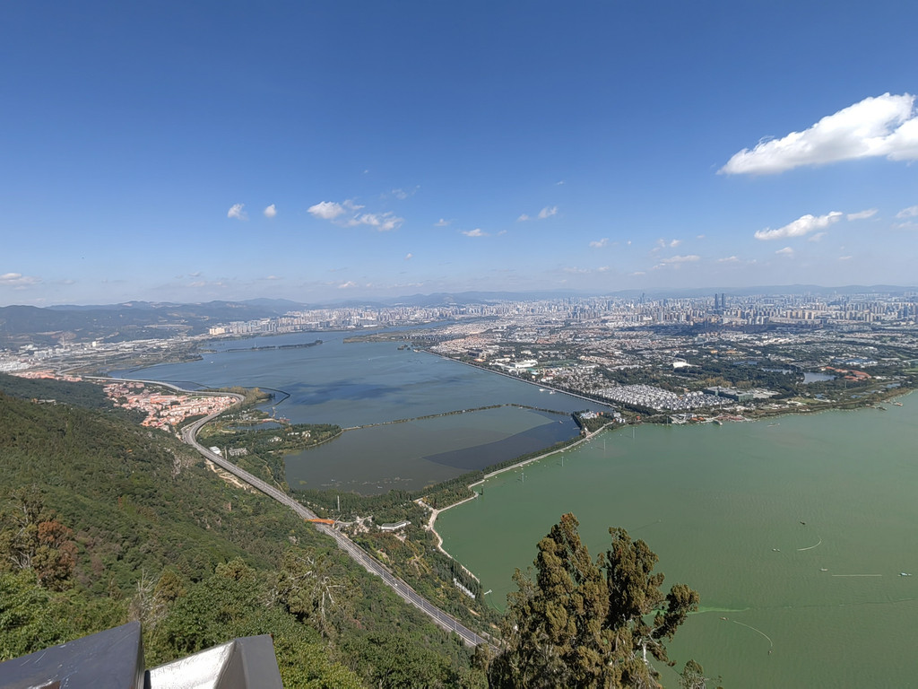 登上凌虚阁,视野开阔,景色极为壮观。在这里可以俯瞰大美滇池和昆明市区,近处的滇池与远处的城市建筑历历在目。