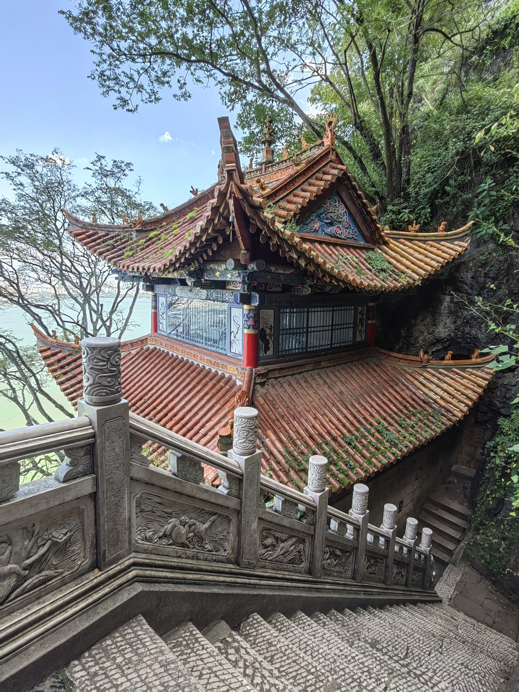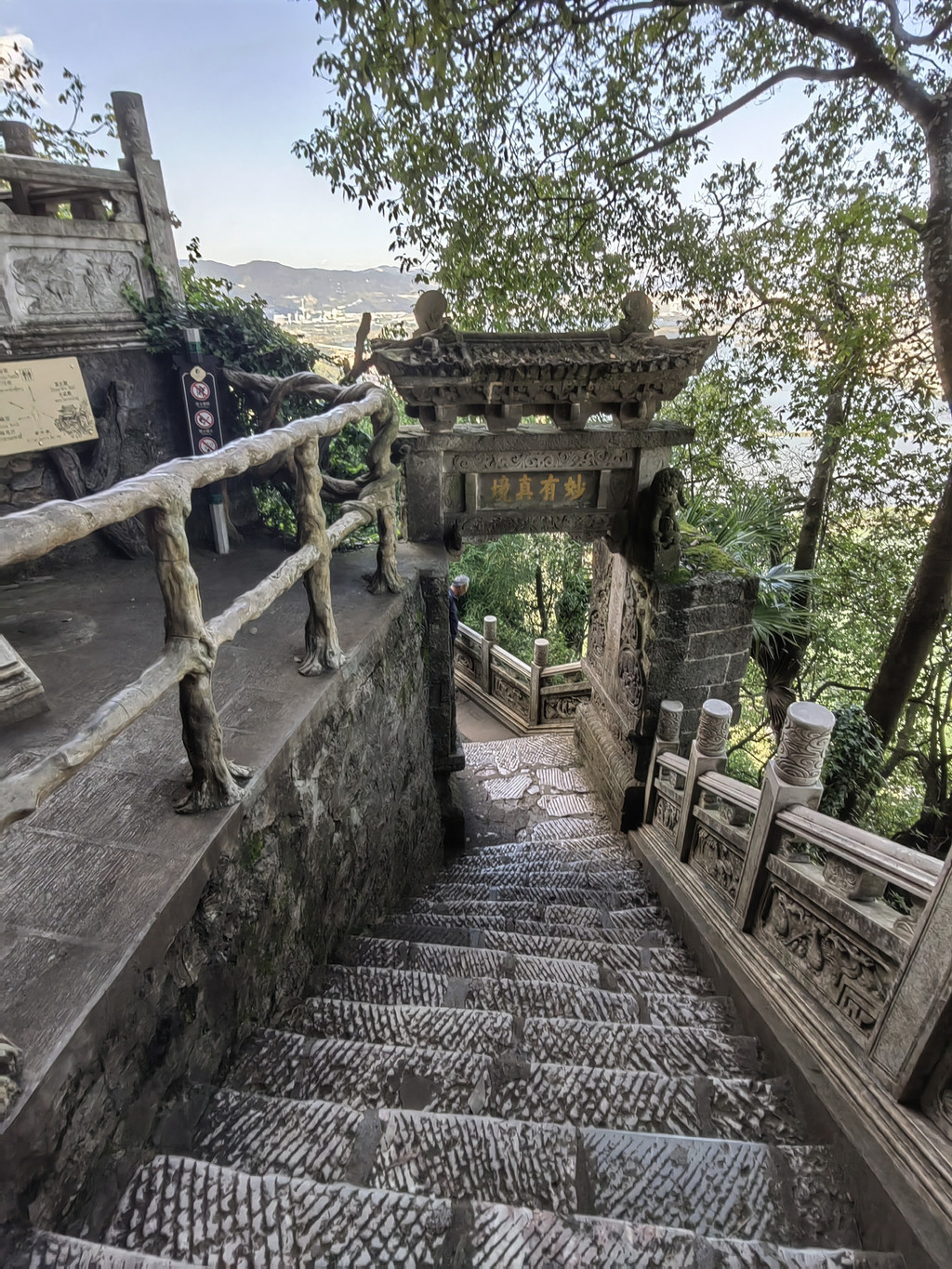 抵达索道上站后,首先沿栈道步行登顶,前往凌虚阁。