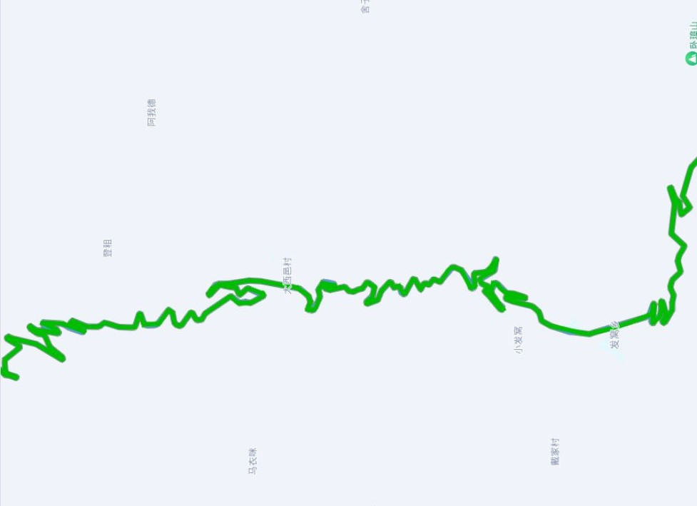 今天的目的地是位于云南楚雄州武定县的己衣大裂谷。从昆明出发到目的地仅有190多公里,但百度地图提示需耗时长达5个多小时。从上面的地图看,昆明到武定的直线距离和武定到己衣大裂谷的直线距离好像差不多,但前半程为70多公里的高速公路,耗时也就是一个小时左右(包括出城上高速前的地面道路)。后半程是22公里的G108国道和97公里的乡道长己线,比前半程远了将近50公里之多。将地图放大了以后就明白了为什么直线距离差不多而实际行程却相差甚远的原因(见下图)。其实这种情况在云南很常见,当百度地图推荐几条路线供你选择时,尽管在手机屏幕上看上去,走高速公路绕弯最大,似乎是最远的一条路线。但一看里程数,却往往是行程最短的路线。这是因为走高速逢山钻洞、遇谷过桥,虽然绕弯,但走的是平路,无需爬上爬下;而走普通公路则不然,有时为了翻越一道山脉,常常先是向上爬一、二十公里盘山道,过了垭口再向下出溜一、二十公里盘山道,但从地图上看,走的直线距离可能也只有五、六公里而已。