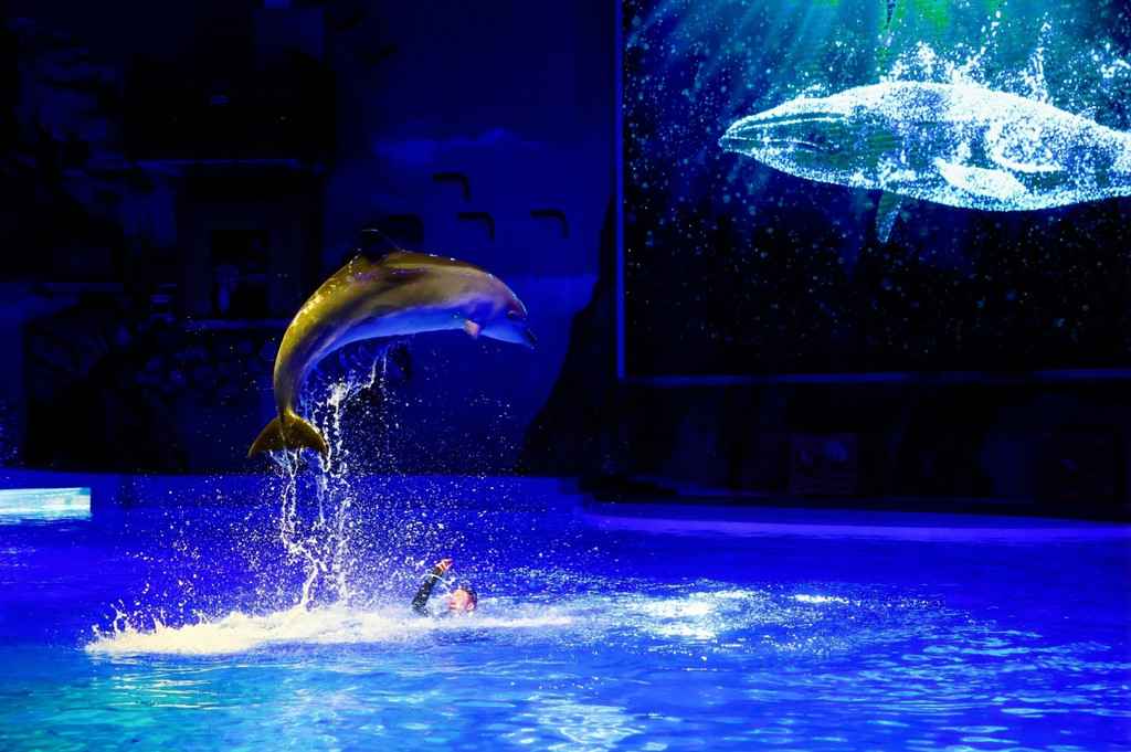 这个五一,"赛博巨鲸"将震撼空降海底世界!巨型软体无人机科技化身"深海巨兽",呈现巨鲸在深蓝中游弋、盘旋的震撼场景。当庄周笔下的鲲鹏化身数字时代的神兽,现实与幻想的边界在此消融。游客可跟随巨鲸轨迹畅游海豚剧场,感受"上天入海"的逍遥意境,拍摄未来感十足的打卡大片。