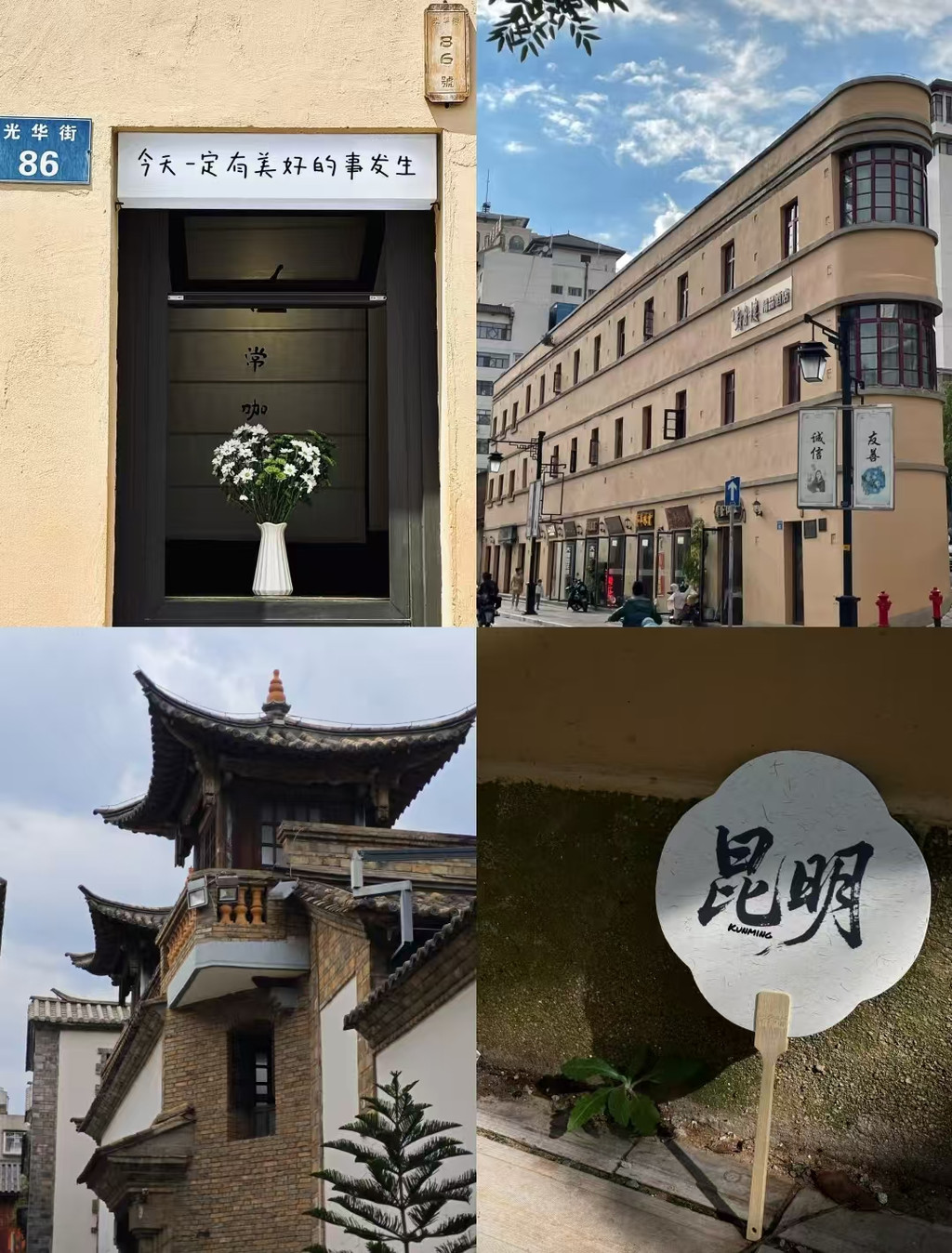 - 昆明老街:骑行15分钟可达,明清建筑保留得超完整,街上有很多手作店、咖啡馆☕,还有老昆明小吃摊,逛吃逛喝超自在。