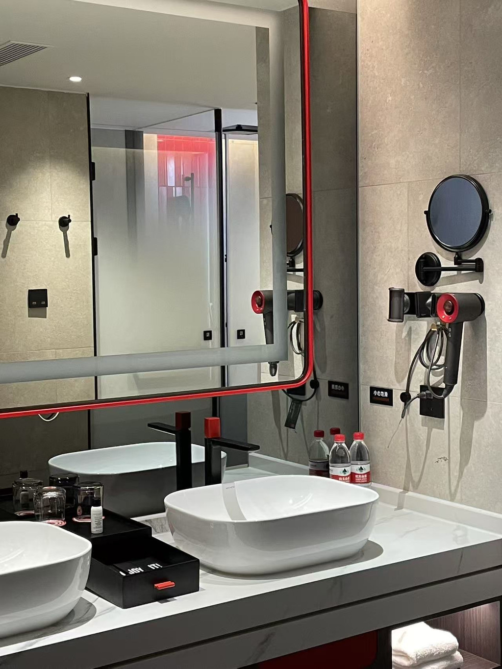 走进客房,目光所及皆是惊喜。简约高级的家具搭配暖黄灯光,营造出温馨的居家感;落地窗旁的懒人沙发正对着城市的景色,抬手便能将落日与霓虹尽收眼底。床品柔软得像云朵,躺下便让人卸下所有压力;卫生间干湿分离,洗漱台上不仅摆放着品牌洗护用品,还贴心准备了卸妆棉与润肤乳,细节处尽显用心。