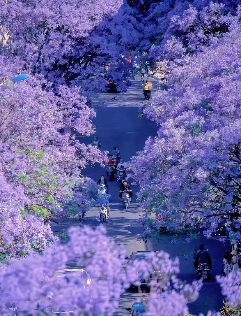 每年4-5月,昆明被紫蓝色“承包”——蓝花楹季来啦🪻!街头巷尾都是惊喜,选对打卡点+舒服酒店,旅程超顺✨。