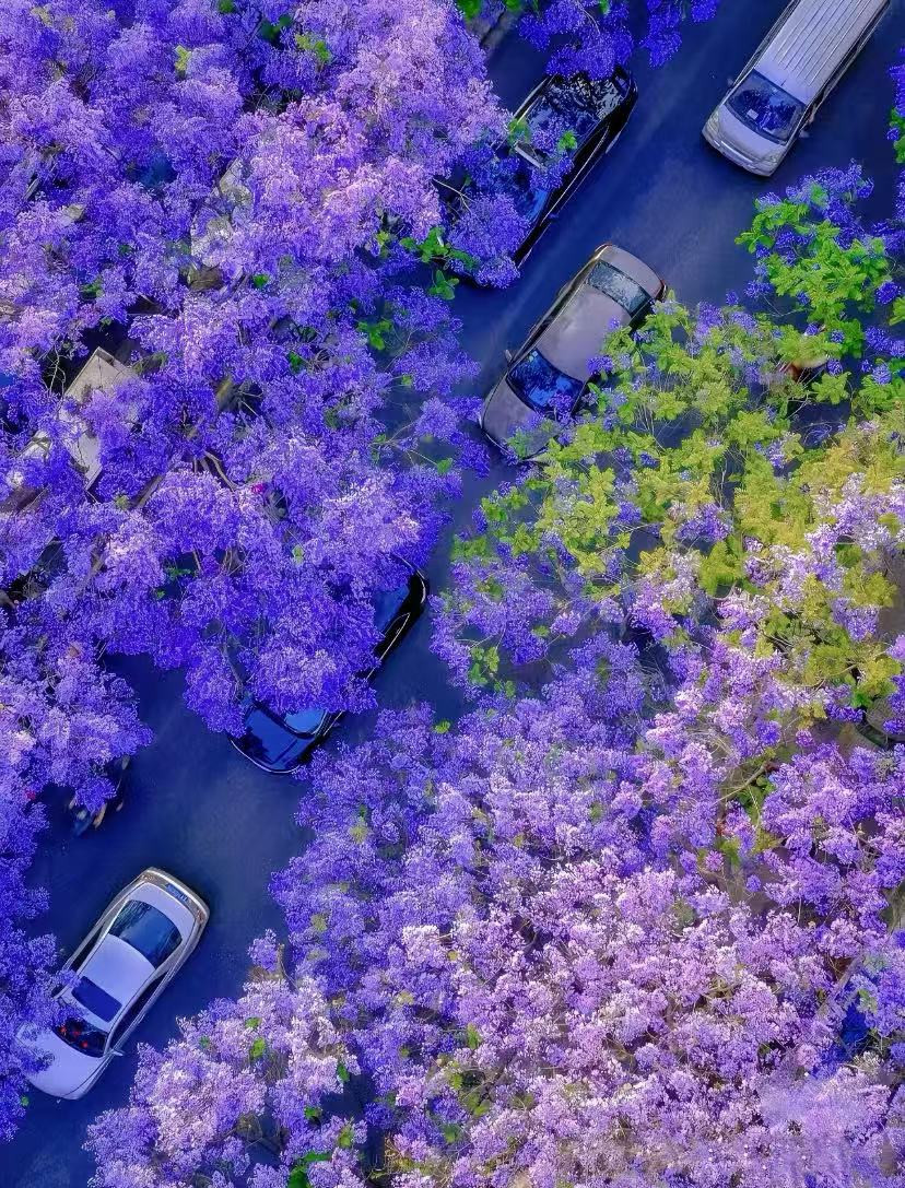 • 教场中路:必冲!枝桠搭成“紫蓝隧道”,风吹花瓣落🍃,随手拍都是大片📸,早晚光线超美;