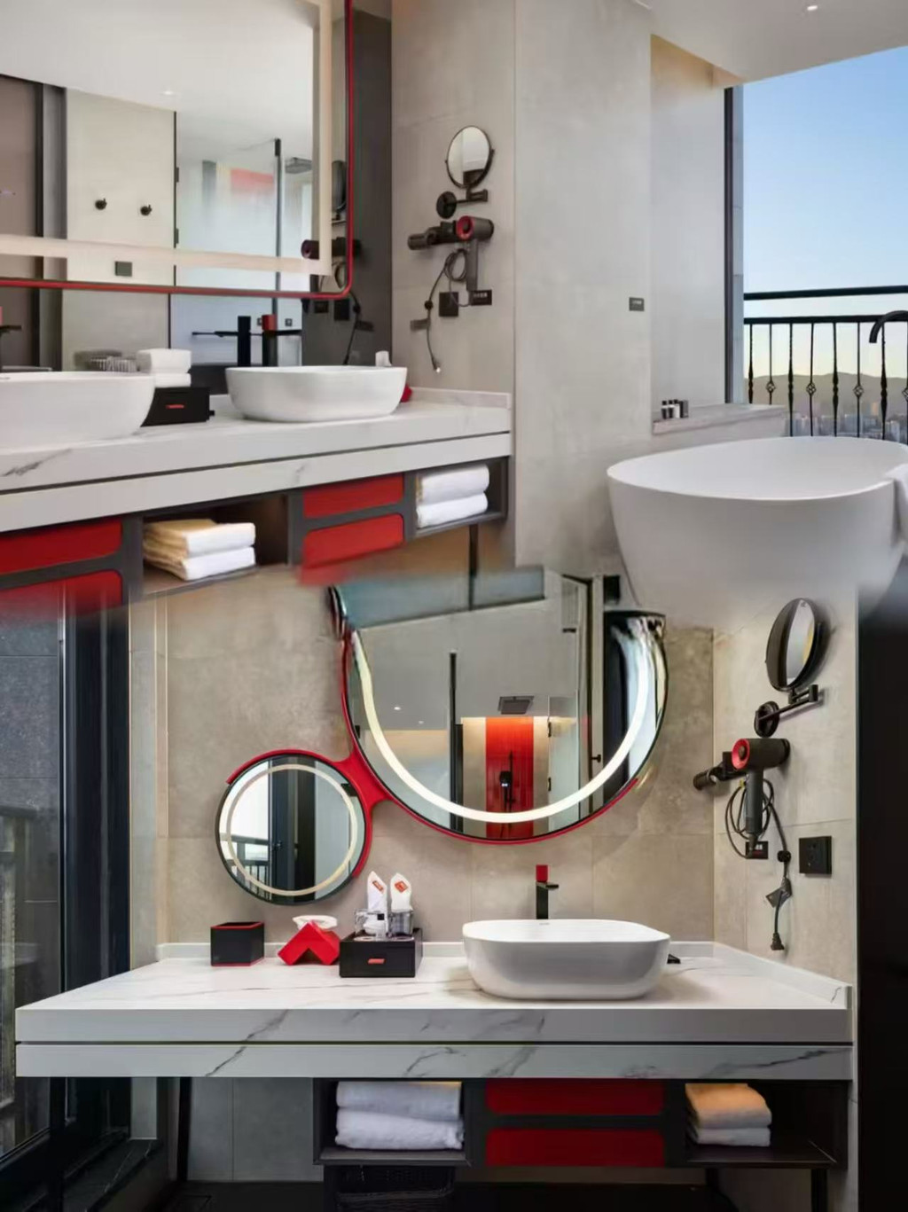 ✌️推开酒店大门,时尚的红黑配色加上现代感的家具,既保留老昆明的温润质感,又透着现代美学的利落。客房更是细节满满,部分房型自带小阳台,清晨被鸟鸣唤醒时,推窗就能看见阳光洒老院墙上,随手一拍都是治愈系风景;床垫选用符合人体工学的进口品牌,搭配定制的棉床品,旅途的疲惫在躺下的瞬间便悄悄消散。