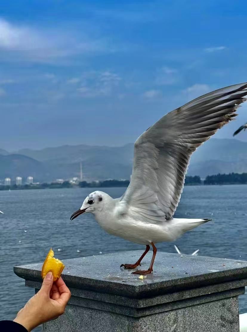 每年11月到次年3月,西伯利亚来的红嘴鸥准时赴约🦢,像一群白色小精灵在头顶盘旋。花5-10元买袋鸥粮举起来,它们会精准叼走,歪头啄食的模样憨态可掬🥰,胆子大的还会落在手上撒娇~