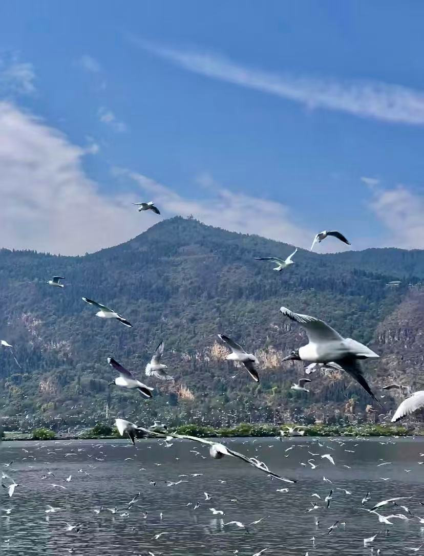 - [18分钟前] 生而为人** 发表了云南资讯 谁说昆明没有海?来福保半岛就懂了——沙滩、椰影、滇池水,红嘴鸥划过“海岸线”,每一张照片都像闯进三