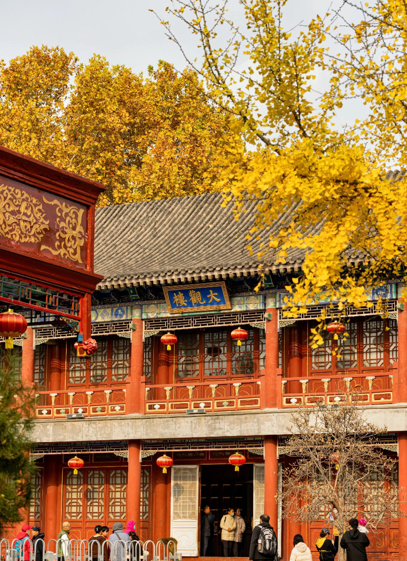 古寺藏着惊喜!大雄宝殿前的对称银杏超上镜,红墙飞檐配金黄叶片,上午9点前的侧光拍人像自带柔光滤镜✨。走千步岩古道时,捡片叶子放镜头前虚化,秒变秋日电影画面🎬。