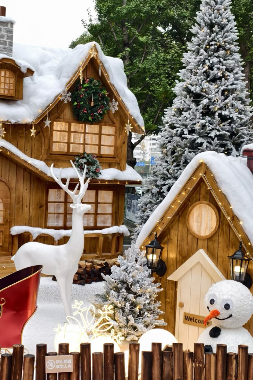 往里走更绝!原木雪屋街区直接戳中少女心💘:屋顶落满“积雪”,暖黄串灯绕着木屋,红雪橇、圆滚滚雪人和雾凇圣诞树凑成圣诞全家福🎅 穿白色毛衣站在雪屋前,随手拍都是电影截图既视感(朋友圈九宫格根本不够发!)