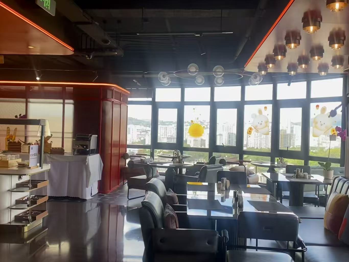 刚进酒店高空餐厅就被戳中 —— 整面落地窗把昆明城景框成动态油画,要是赶上下雨,窗外说不定还能撞见彩虹裹着古寺红瓦的神仙画面