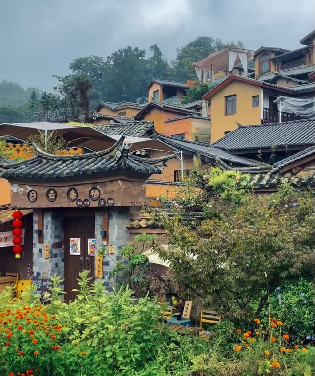 雨天去直接封神😭 青石板路被雨水打湿得亮亮的,雨滴敲着瓦片叮咚响🎶 整个村子安安静静的,没有喧嚣,只有风声雨声,走在路上都觉得心都慢下来了~