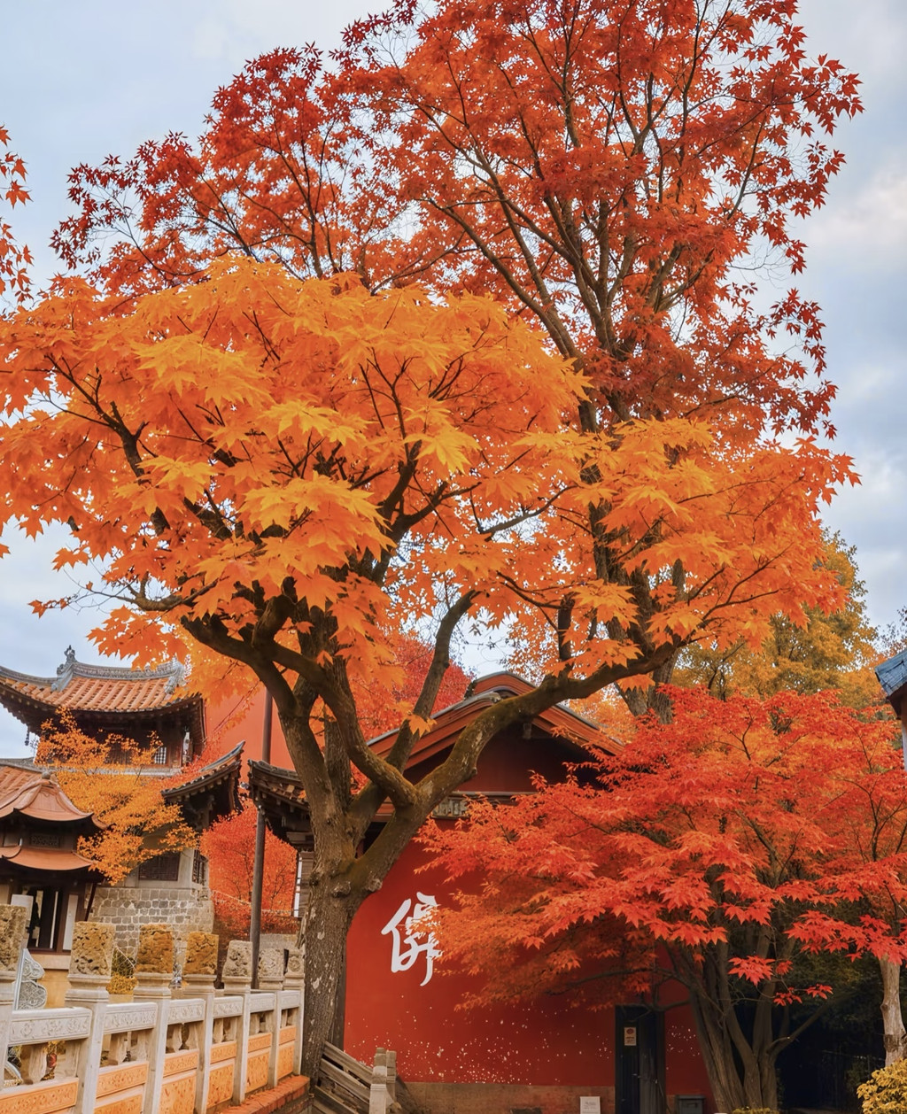 红枫裹红墙🍁、银杏压瓦顶🍂,现在正是最佳赏期!1.5h不绕路路线: