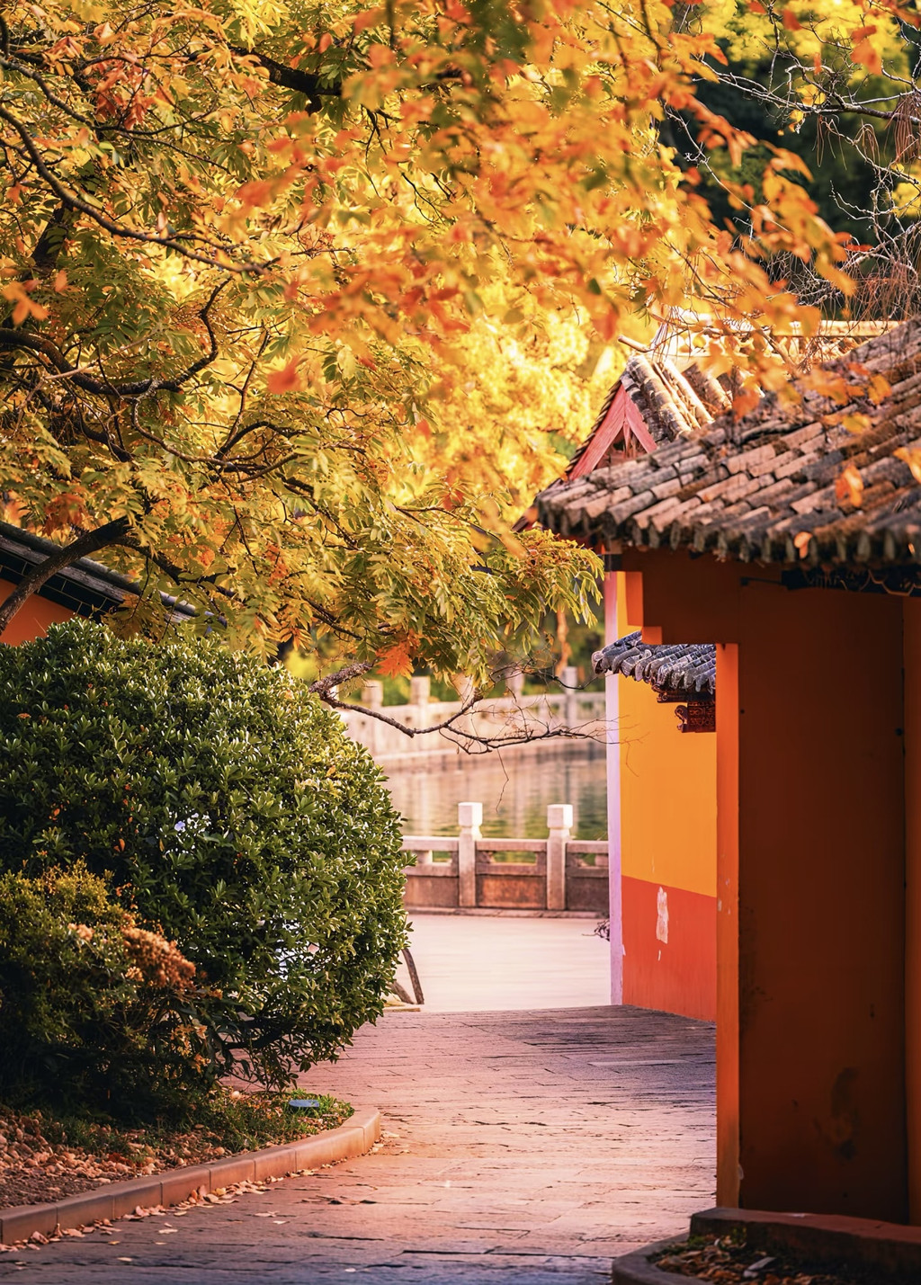 进门顺着主路冲→红枫圆拱门🏯→右转拍月牙黄墙→顺路拐银杏红墙→收尾坐湖心亭晒秋阳🌞,路好走还能薅光所有出片点!