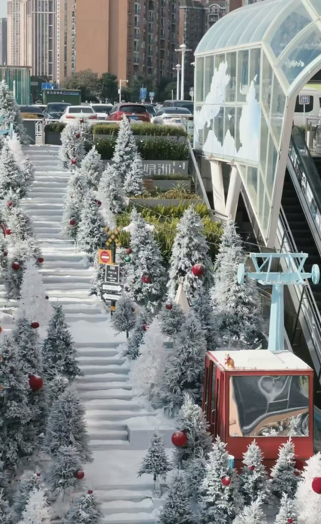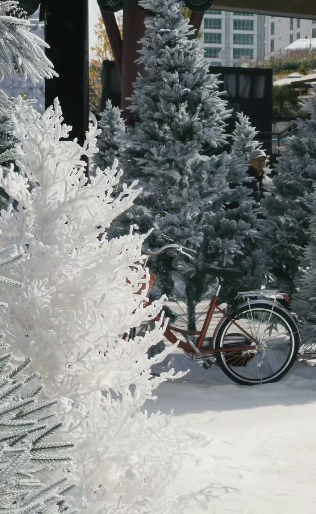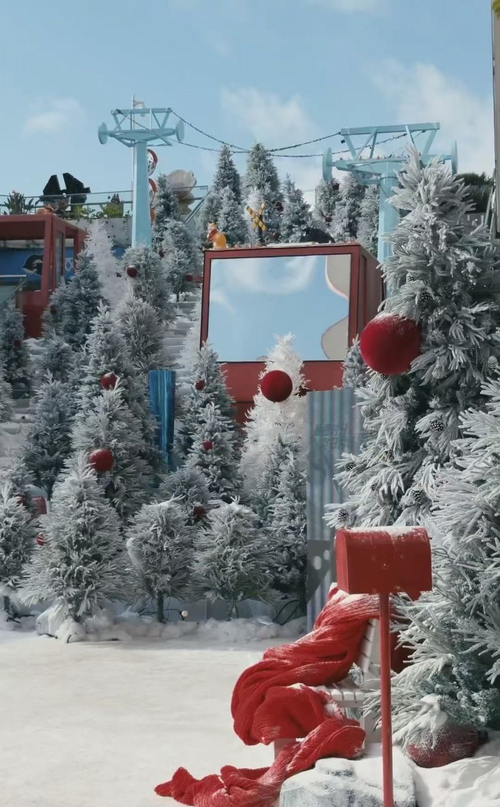 霜白圣诞树排满台阶,红绒球+复古单车+小电话亭,往那儿一站就是美式小镇女主既视感📸傍晚人造雪一吹、灯光亮起,连风里都是甜的~谁拍谁好看!