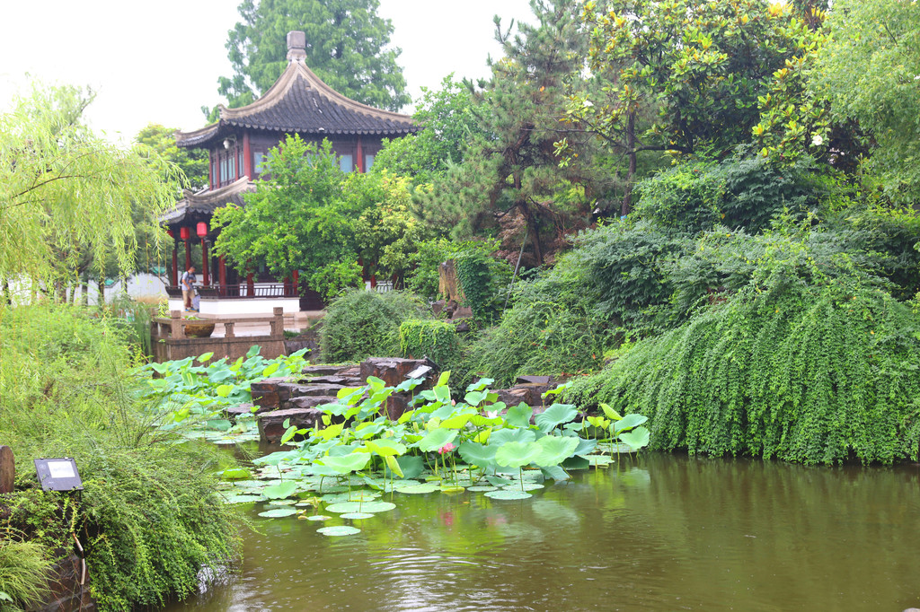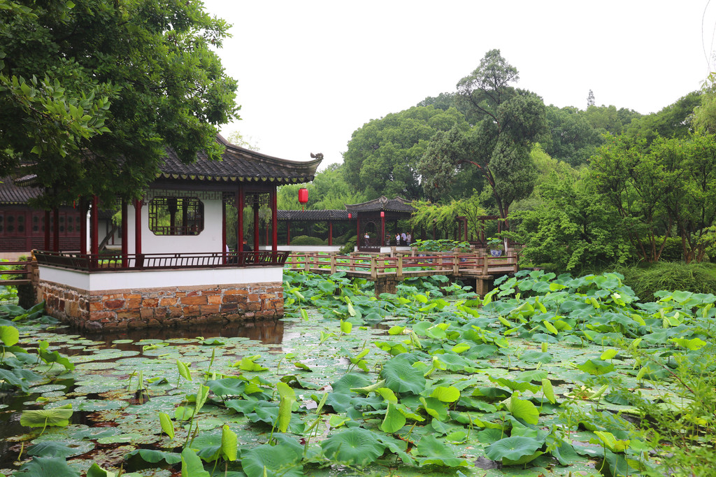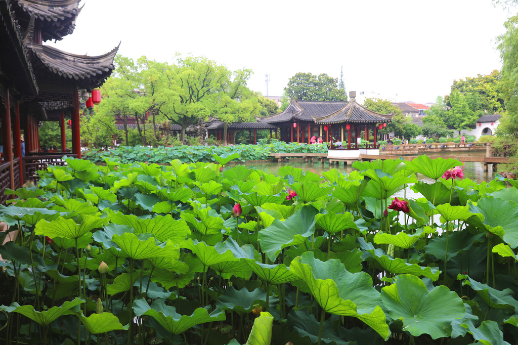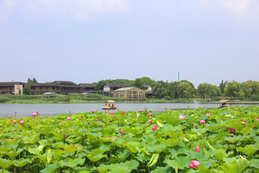 吃完奥灶馆面才中午十二点多,酒店入住要下午二点后,一看天气,今天难得不是下雨天,决定先去找个地方玩一下,现在正是荷花竞相绽放的季节,决定先去不远处位于阳澄湖半岛的莲池湖公园赏赏荷花。