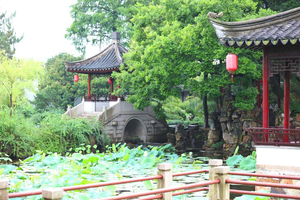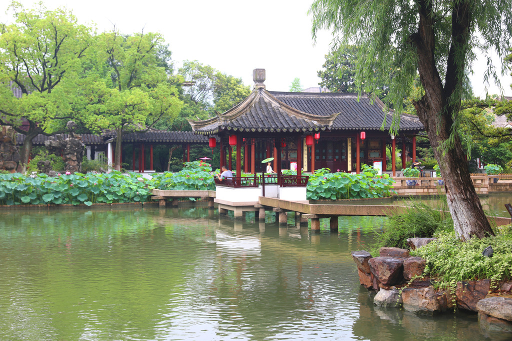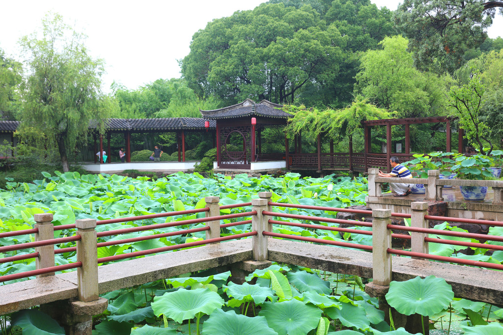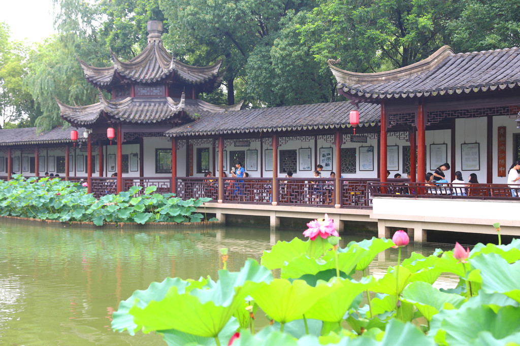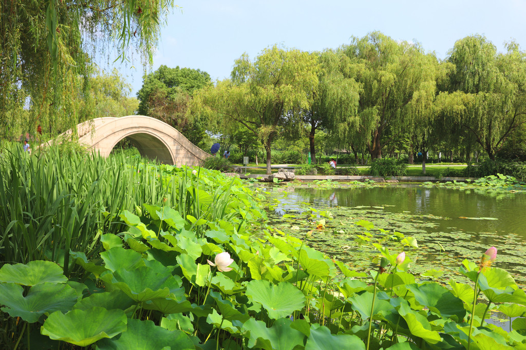 吃完奥灶馆面才中午十二点多,酒店入住要下午二点后,一看天气,今天难得不是下雨天,决定先去找个地方玩一下,现在正是荷花竞相绽放的季节,决定先去不远处位于阳澄湖半岛的莲池湖公园赏赏荷花。