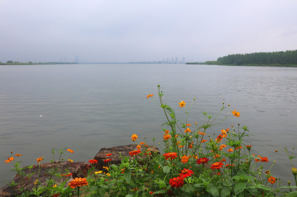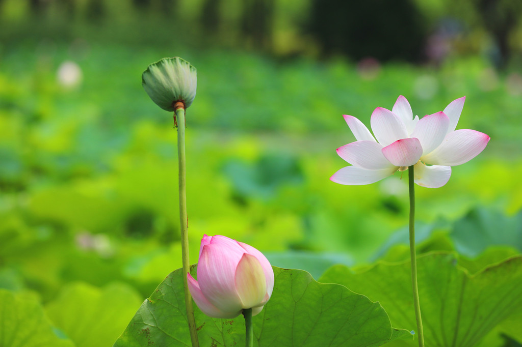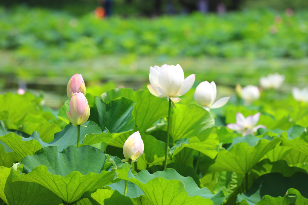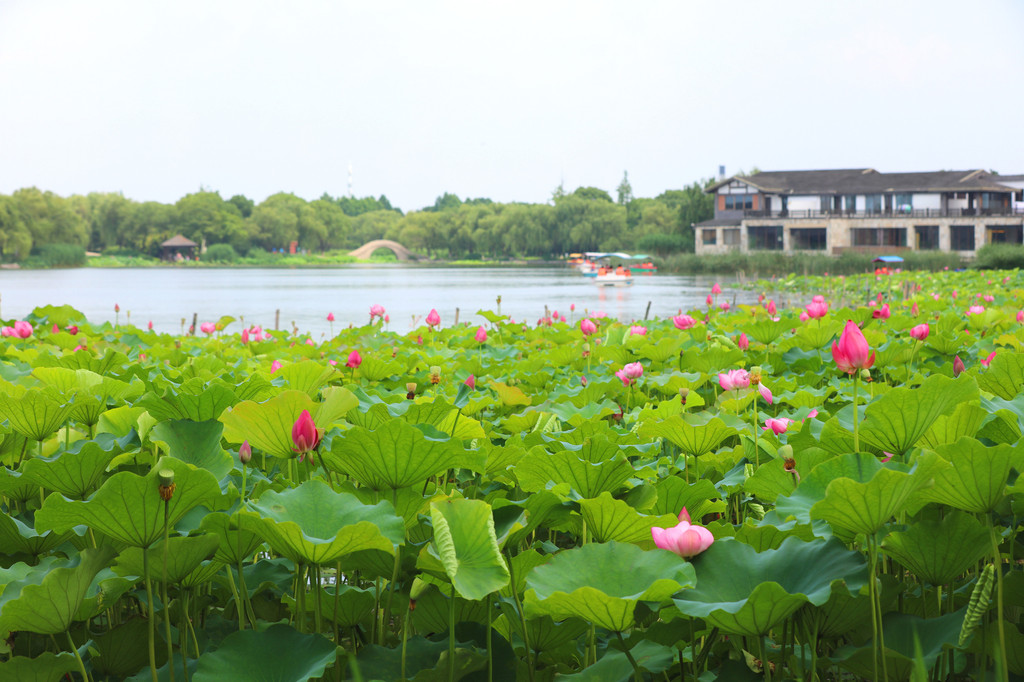 莲池湖公园占地面积约79万平方米,其中水面面积约20万平方米,绿化面积约43.5万平方米。公园设计由禅意出发,通过整体自然、野趣、朴素的景观,塑造静雅、质朴的自然“禅”境,给游客以流畅、大气、丰富的景观体验。公园以水面为中心,种植大片的荷花、莲花等水生植物,配以石桥、木廊、雕塑、小品、凉亭等休闲休憩设施,夏日里“接天莲叶无穷碧,映日荷花别样红”的诗画意境尽展,营造了独具特色的公园景观风貌。这里的荷花品种多样,颜色不同,盛开时间也不相同。眼下公园里荷花里已经让人眼花缭乱,一池池荷莲,有小荷才露尖尖角,有花谢叶残水面平,无不展现着娇容,内含着硕果,每一款都充满了韵致雅趣。