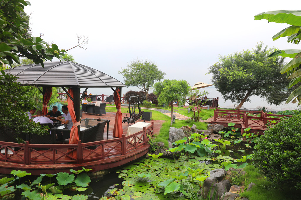 好山好水好风光的 常熟 也不缺品尝美食的好地方。从曾赵园出来我们开车前往昨天已预订好的位于 常熟 市区东南方的昆承湖旁的东湖春天花园慢调餐厅。来过昆承湖周边好多次,这里虽没有 常熟 的招牌景点尚湖那么著名,但却是当地人吃饭、喝茶、休闲的地方,这里有几家环境、品味相当不错的餐厅和茶馆,今天我们去的,原来是一家私人会所龙邸会所,占据着昆承湖最好的地域,当初可是 常熟 高端的吃饭休闲地方之一,现在应该是不能适应大环境,把私人会所改成了一家对公众开放的餐厅。