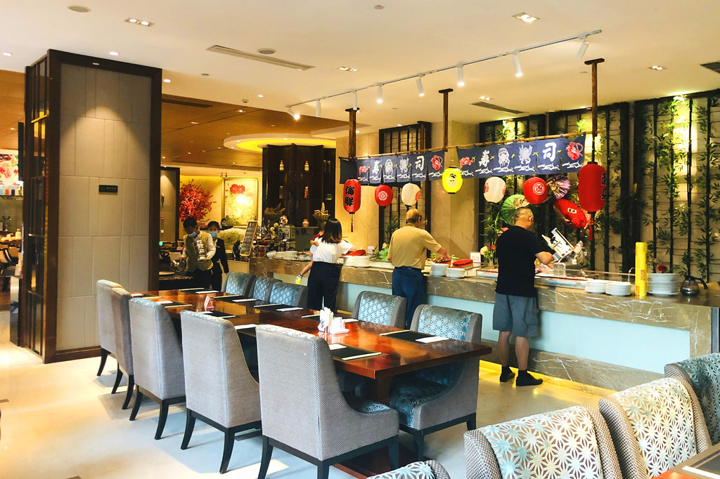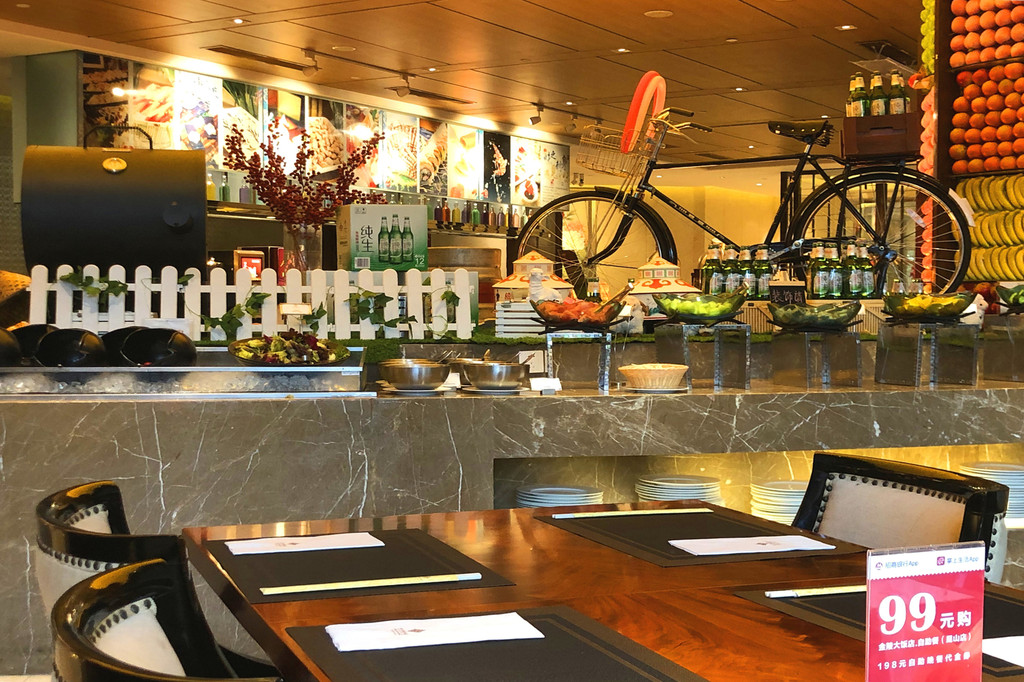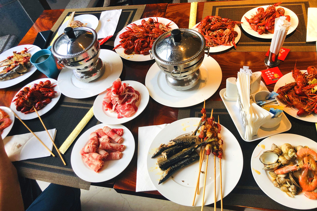 晚餐是我们订的客房+餐的自助餐,进入餐厅需服务员领位按排入座,就餐的不仅仅是酒店住店客人,酒店还出售自助餐餐劵,吸引了一大批单来用餐的客人,所以自助餐厅的人气看上去挺旺的,可惜因为最近疫情的原因,海鲜档口的生鲜海产品下架,让品种与档次降低了不少,当令的小龙虾成了主角,技艺精湛的厨师还是精选自种优质食材,尽可能地为宾客呈奉地道精致的特色美馔和欧亚风味佳肴,当然火锅、烤肉之类一吃就饱,加上啤酒、饮料是畅饮的,我们不可能把全部食材打卡一次,经过对自已感兴趣美食的一轮轮洗礼,以至最后胃间己没有甜品的位置了。