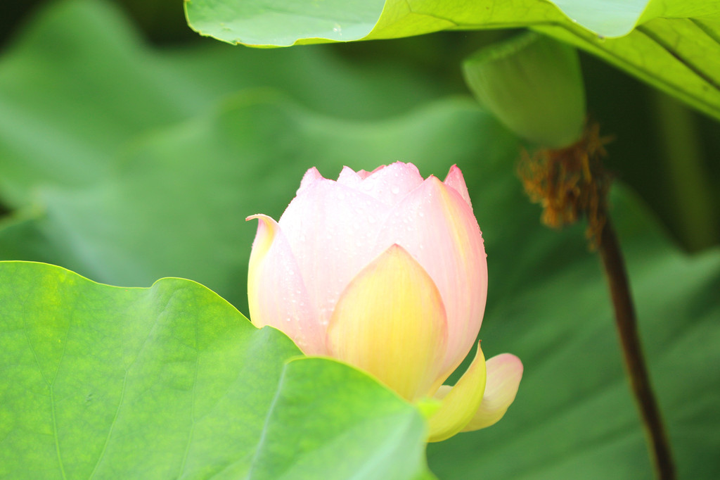 作为一处开放式的公共休闲绿地,这里景色优美,风光旎丽,而且不收费,连停车费也免收,是一处人少清静的赏荷地,我已经是第三次来这里,今年因为疫情的关系好像来这里的人不多,我们沿着莲池轻轻畅游,荷风送香,“曲曲折折的荷塘上面,弥望的是田田的叶子,叶子出水很高,像亭亭的舞女的裙,层层的叶子中间,零星地点缀着有些白花,有婀娜地开着的,有羞涩地打着朵儿的……”古往今来,关于荷的诗词歌赋不计其数,确实,荷有无穷的魅力在吸引着人们去欣赏它,赞美它。