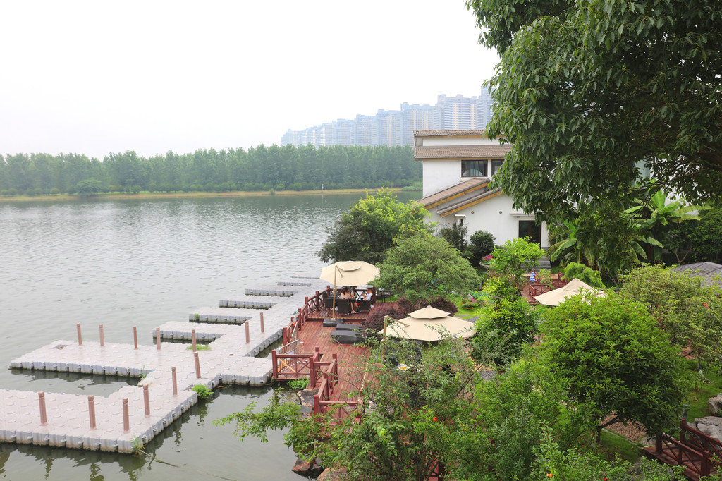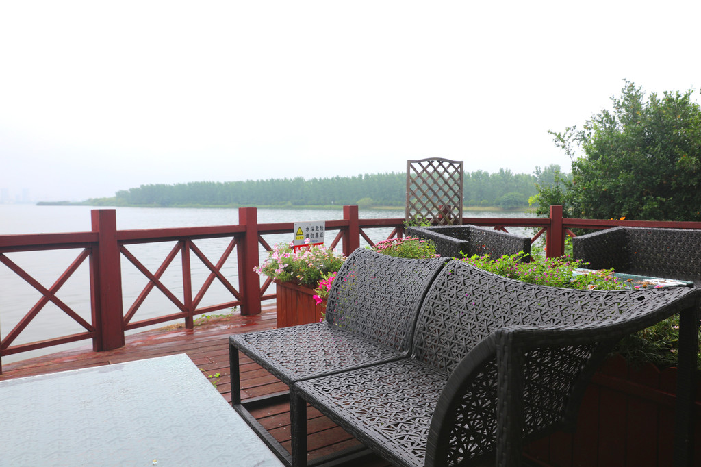 因为占着昆承湖旁绝佳的位置,加上原来龙邸会所主人财力雄厚,整体欧式建筑风格并配有一个非常漂亮的法式风格花园,东湖春天花园慢调餐厅更像一处景点,自然是养眼又舒服,午后闲暇时光在这里喝茶聊天、赏荷,能充分品味法式浪漫的感受。吃过午饭,我们在餐厅后花园散步,此刻,烟雾在树丛之间聚散不休,郁郁葱葱,雾气弥漫,犹如仙境,一切都显得那么的幽静、明净,雨中的昆承湖,就像一个娇俏动人、不施粉黛的 江南 少女,青烟淡雾、温润如玉,这大概就是人们常说的,烟雨 江南 佳丽地吧,氤氲朦胧、如诗似画、恍若仙境,我们在这里,听听雨声、看看美景、喝茶聊天,度过惬意的下午,真的是一种非常美妙的感受。