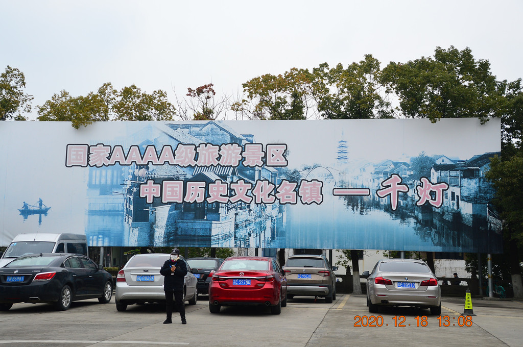 千灯镇尚书路与秦峰路转角处的停车场,距离古镇入口很近。若在双休日,停车位比较紧张。
