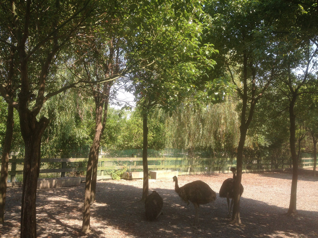 动物观赏区里动物跟动物园当然不能比,但也不算很少。比较受欢迎的就是鸵鸟和鸸鹋,这两种大型的鸟类都不会飞,栏杆内就是它们的活动范围。其他像梅花鹿、波尔山羊、利木赞牛、兔子、火鸡、珍珠鸡、蓝孔雀等,也是颇受小朋友们喜欢的。