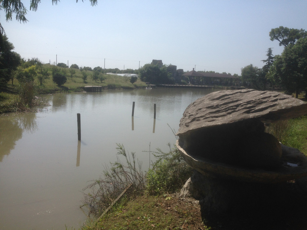 池塘里据说常年养殖着鲤鱼、鲢鱼、镢鱼、鲈鱼、草鱼、鲫鱼、鲶鱼等鱼类,大的体长可以达到三十公分左右,就看你的垂钓水平怎么样了。我们当然不会在这里逗留,钓鱼这种技术活儿真不适合我们。