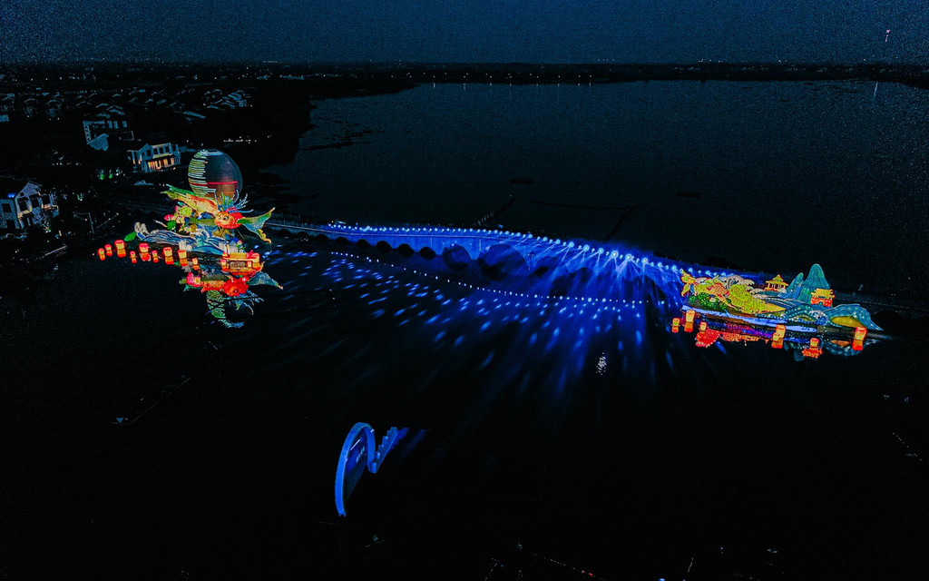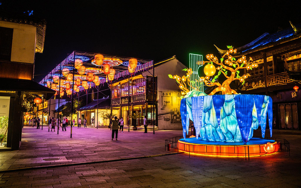 各色流光溢彩的彩灯从水乡到古镇,沿着老街小巷,将湖湾、水巷、小桥、老街、古宅等串连成珠,水影阑珊间一派栩栩如生的水乡百姓生活场景便展现在眼前!