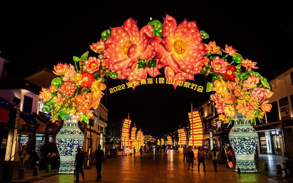 这个海峡两岸(昆山)中秋灯会将江南水乡文化与台湾风俗特色相融合,灯映两岸情更浓,街巷的花灯、广场的灯盏,目之所及一片璀璨,恍然一瞬已处于灯海之中~