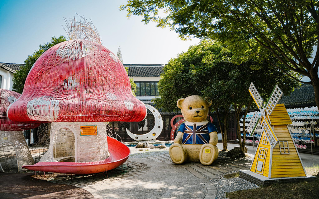 楼下院子里还有各种可爱有趣的小景观和小火车,也太适合过来打卡拍照了吧!