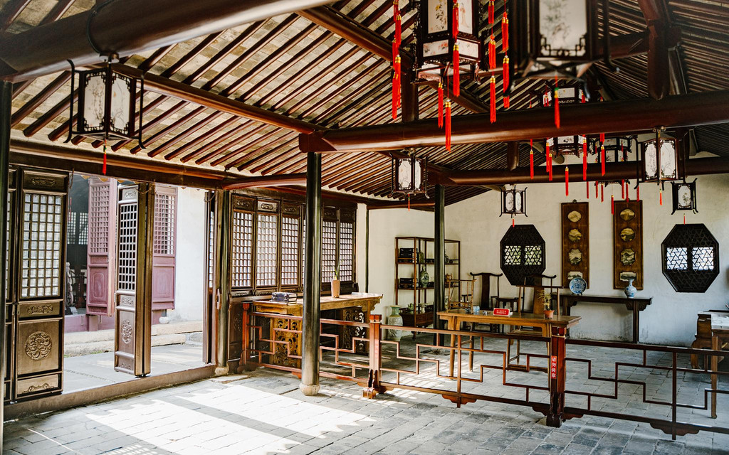 坐东朝西的张厅,是周庄仅存的少量明代建筑之一,前后七进,厅旁箬泾河穿屋而过,虽历经五百多年沧桑但气派依旧,坚实的石柱,细腻精良的雕饰,仍不难看出昔日的风采。