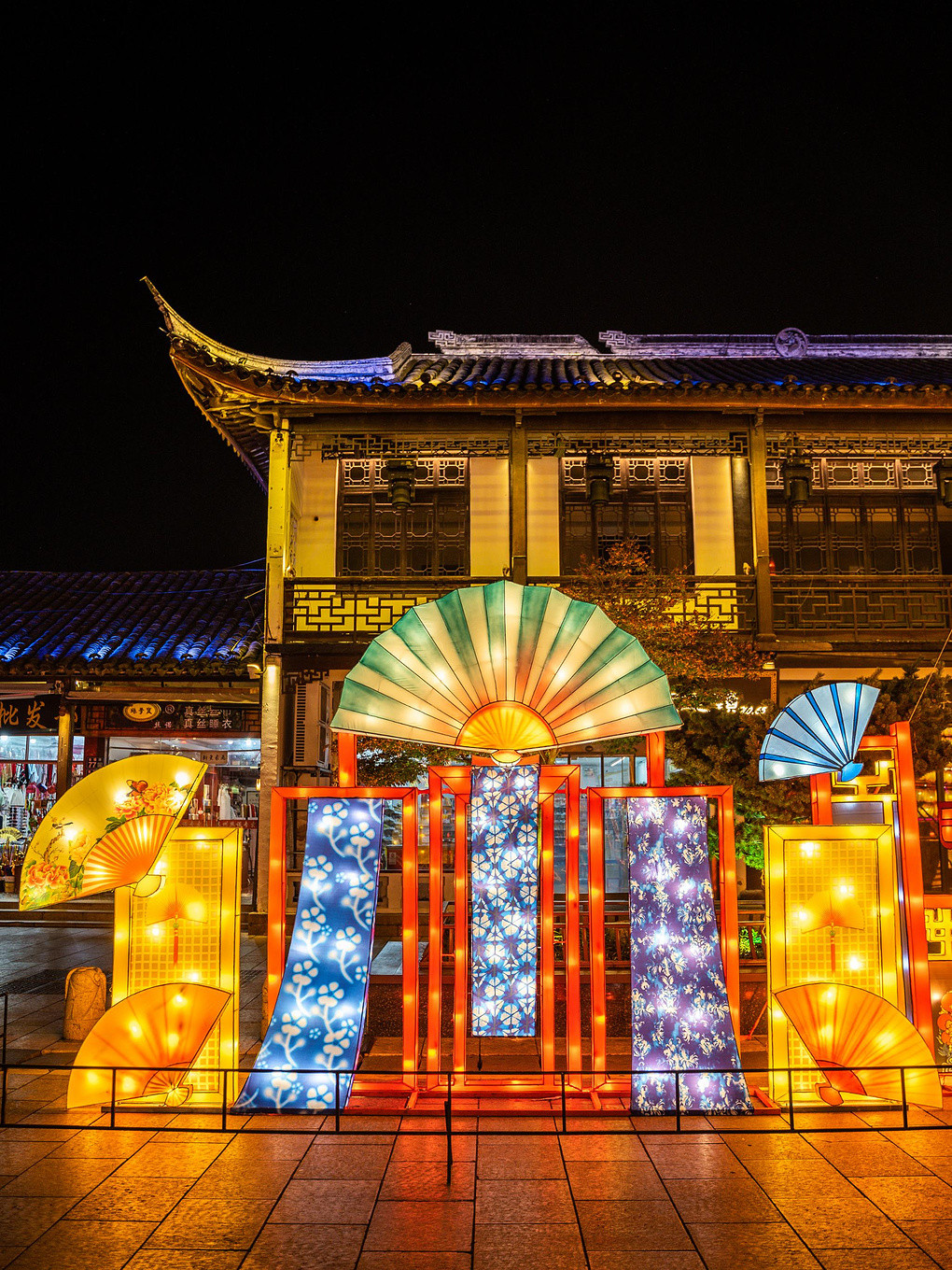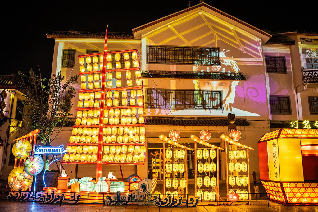 景区入口处布置了好多形态各异的花灯,吸引着来往的游人徜徉街区流连自拍,用移步异景的街角风景表达心中的万千情感。