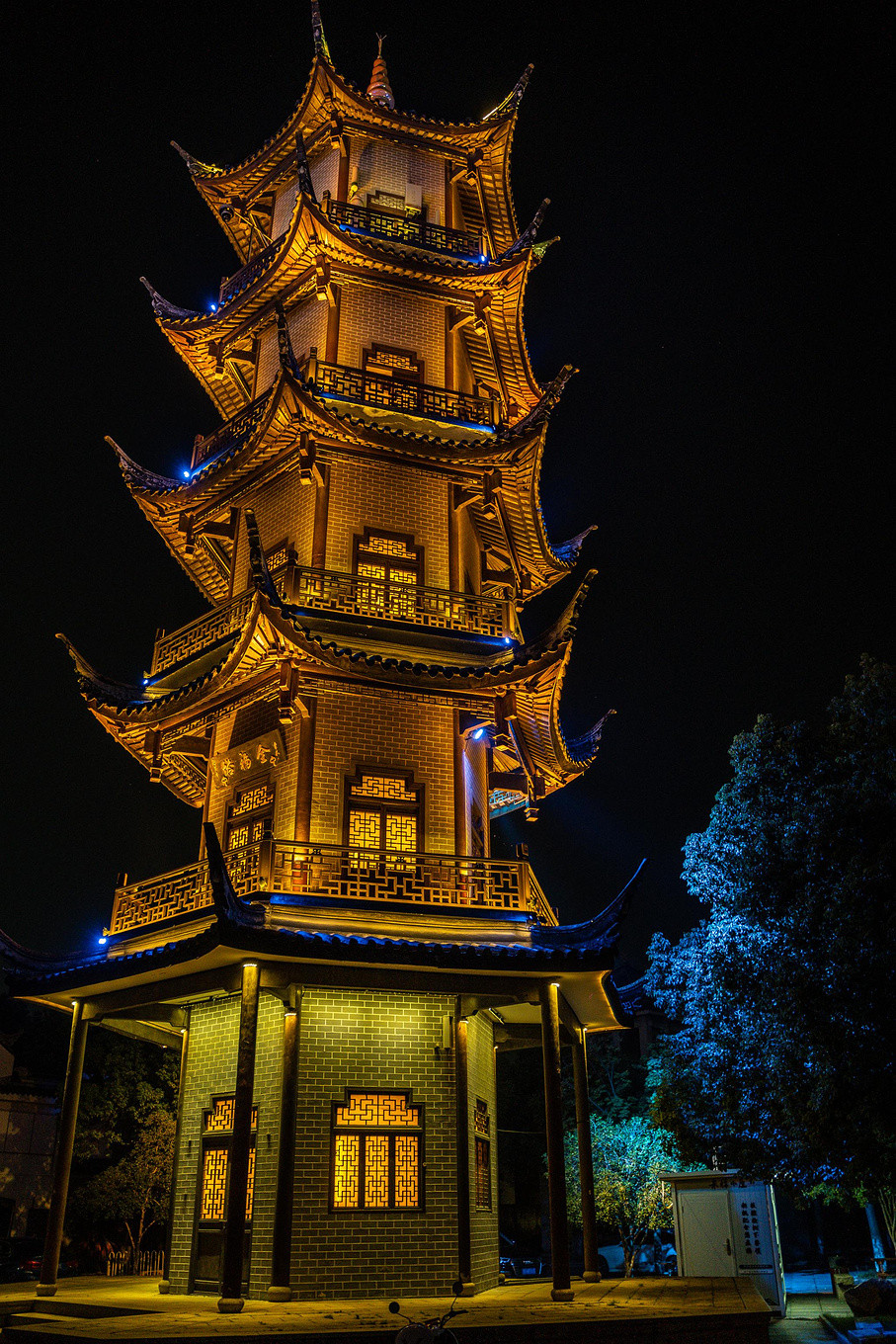 夜色水乡,灯光灿烂,不远处的南湖湾光影秀更是美轮美奂~