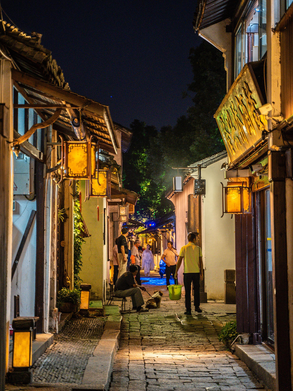 如果说白日里素净的周庄已然出尘,那么华灯初上,略施粉黛的周庄便又是另一番光景~