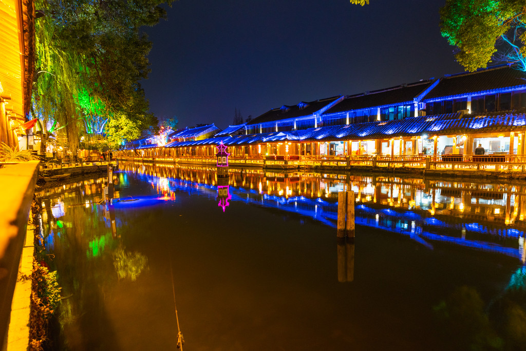 是的,夜晚的周庄更迷人,在寂静的夜里不肯睡去,将灯火延伸至炫烂至极,那是夜晚灯光秀之美。